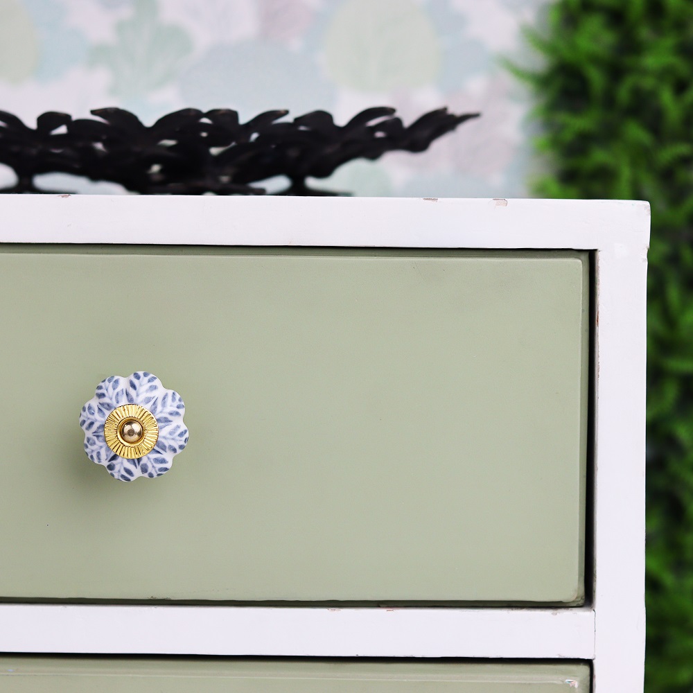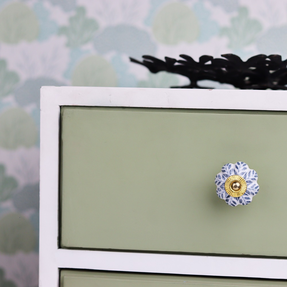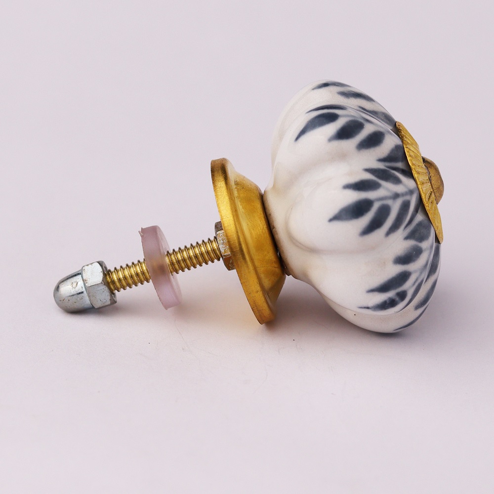 The White Base Grey Leaf Ceramic Floral Melon Drawer Knob infuses beauty, elegance, and a hint of nature into your furniture. Its delightful design and sturdy material make it an excellent choice for anyone wanting to incorporate a unique and timeless element into their home decor. Add this lovely knob to your furniture and let nature-inspired style shine in your living space.