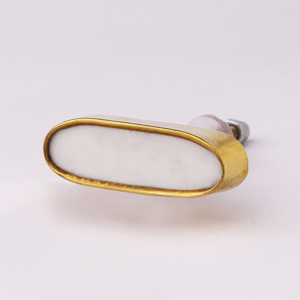 The White Capsule Stone Brass Cabinet Knobs are designed to add a touch of modern luxury to your home. Their unique materials and sleek design make them stand out as a functional yet decorative detail that elevates the look of your furniture.