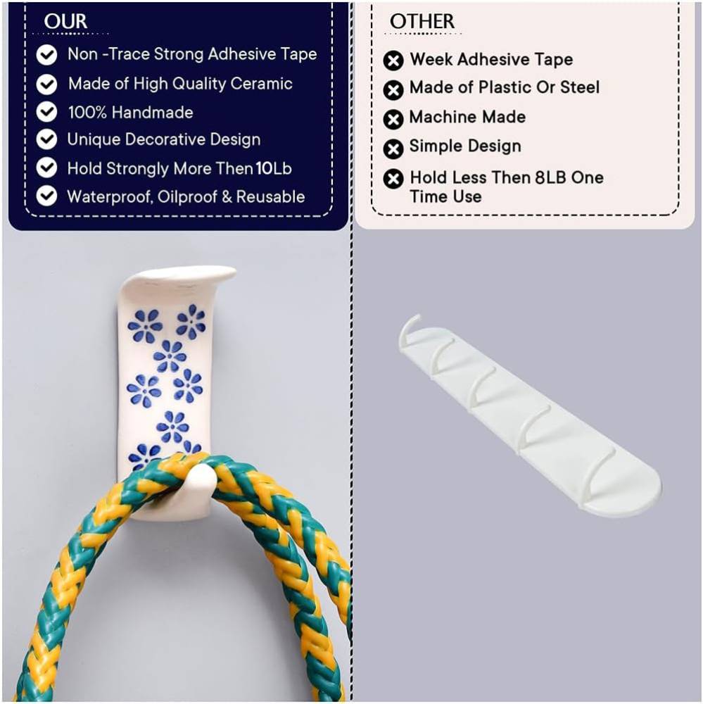 Transform your home organization with the White Ceramic Blue Floral Adhesive Wall Hook. Its chic design, simple installation, and practical functionality make it an ideal enhancement for any room.