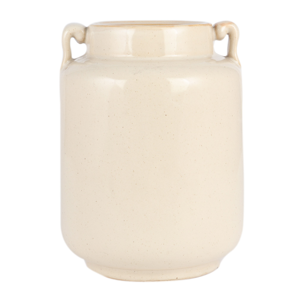 The base colour of this exquisite ceramic jar with two side handles is creamy white, and it also has a big opening. This beautiful fireplace or tabletop centerpiece accent will look great on your mantel or sideboard. Bring great style into your home with this traditionally styled this double white jug shape vase.