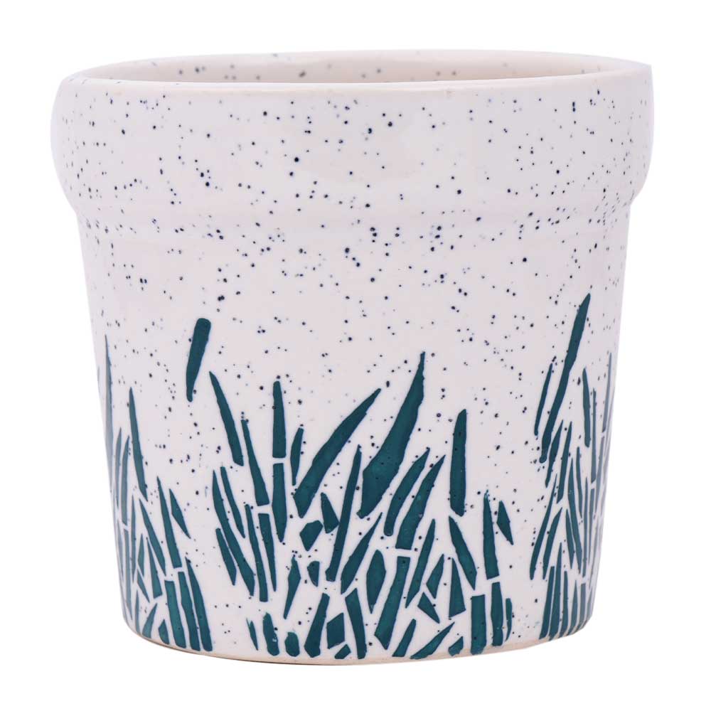 White Ceramic Pots For Indoor Plants With Hand Painted Leaves that is extra decorative that helps to beautify your home, office and corporate offices, shops and other commercial places. Gift for your Friends , relatives and colleagues.
