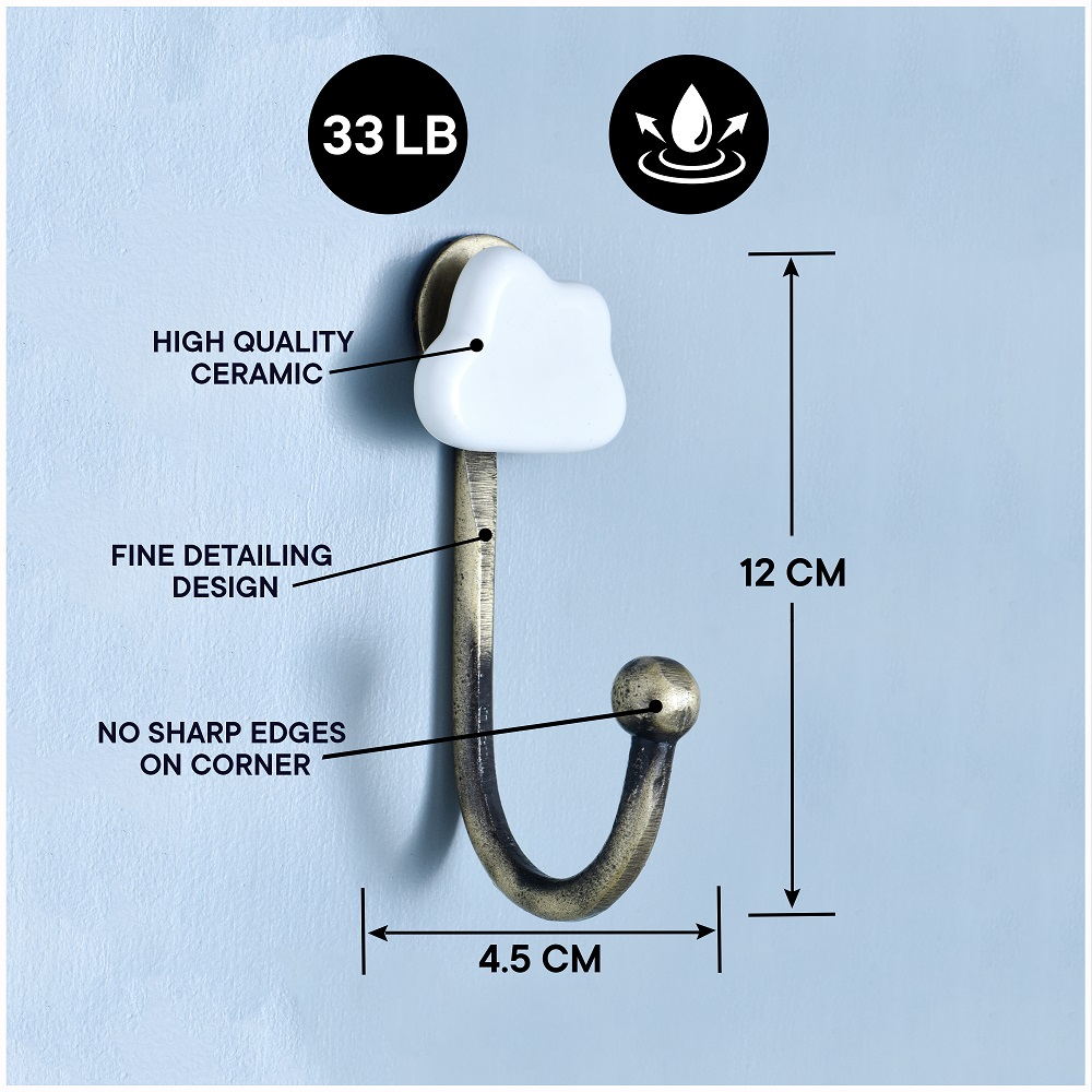 Whimsical yet timeless, the White Cloud Ceramic Metal Hook with Antique Fitting brings a dreamy touch to functional wall storage. Handcrafted with care, it features a smooth, cloud-shaped ceramic top paired with an antique-style metal hook, blending playful design with vintage appeal. Whether you're decorating a child's room or adding charm to a hallway, this hook turns practical storage into a stylish accent.