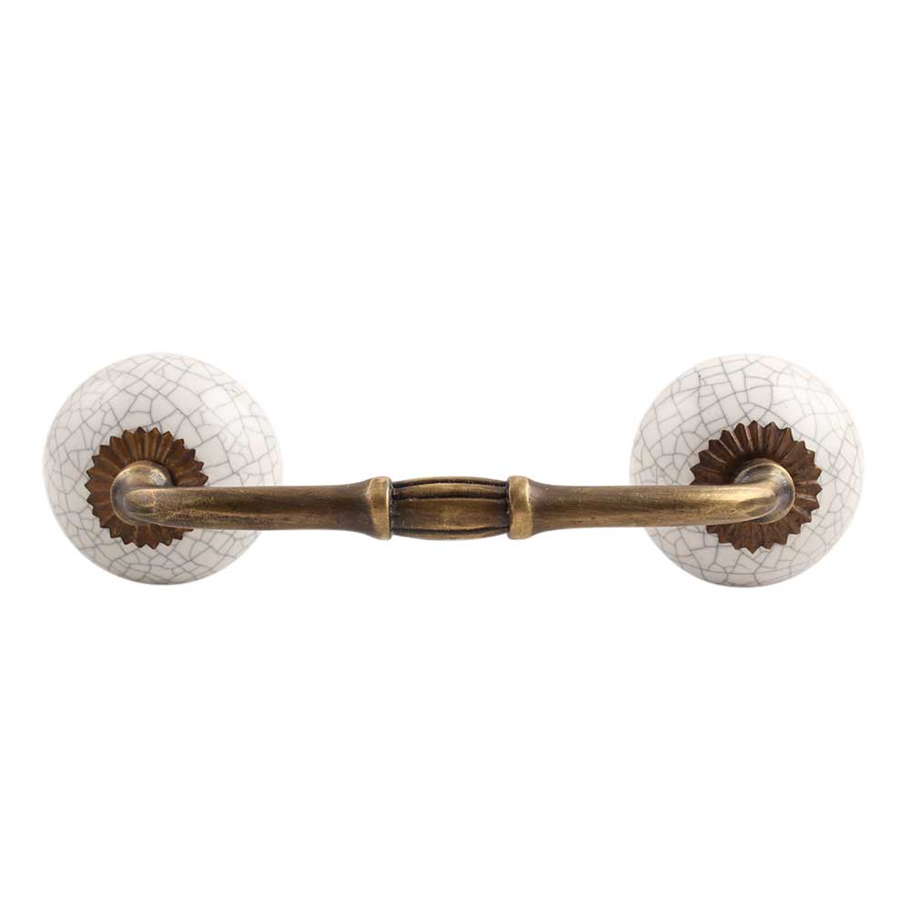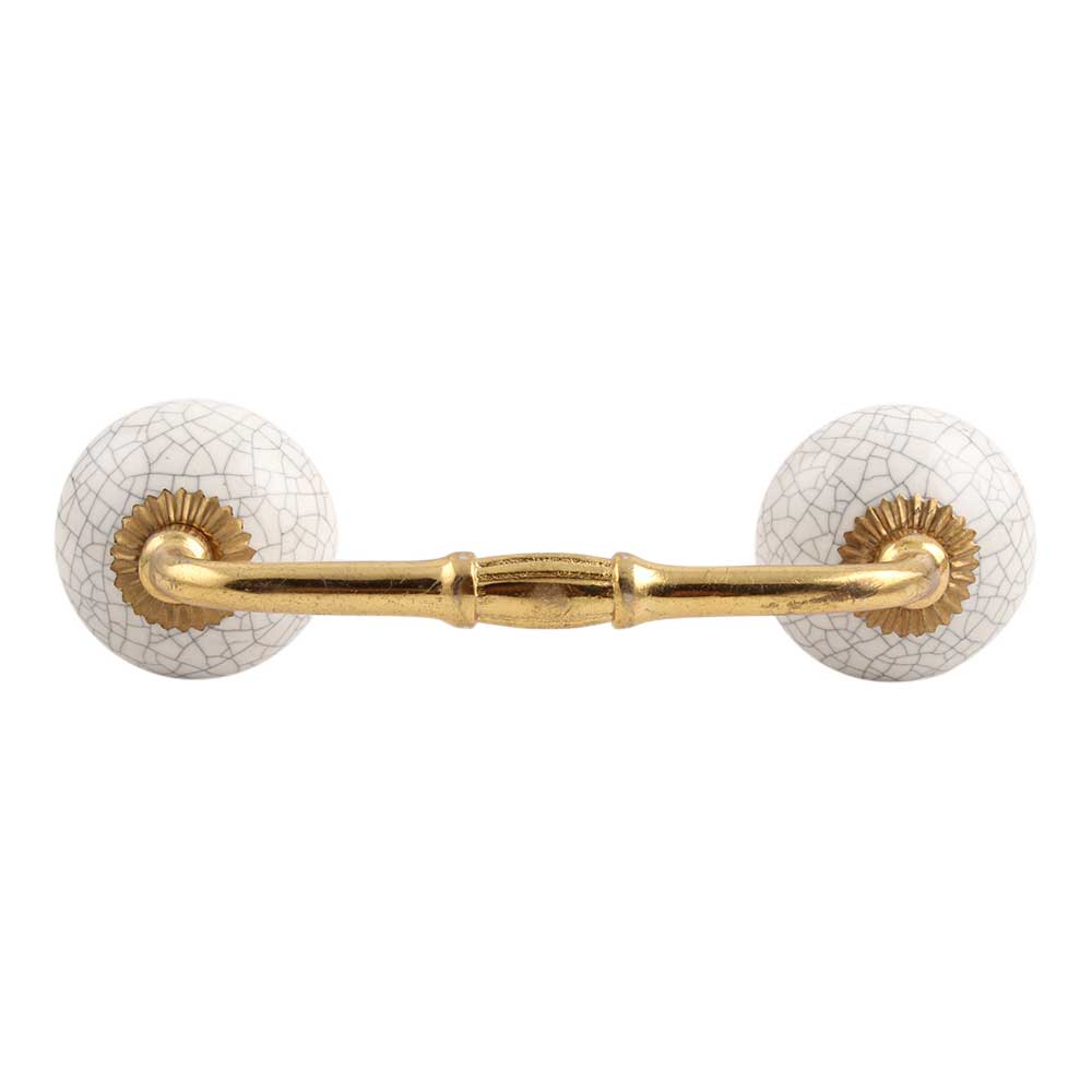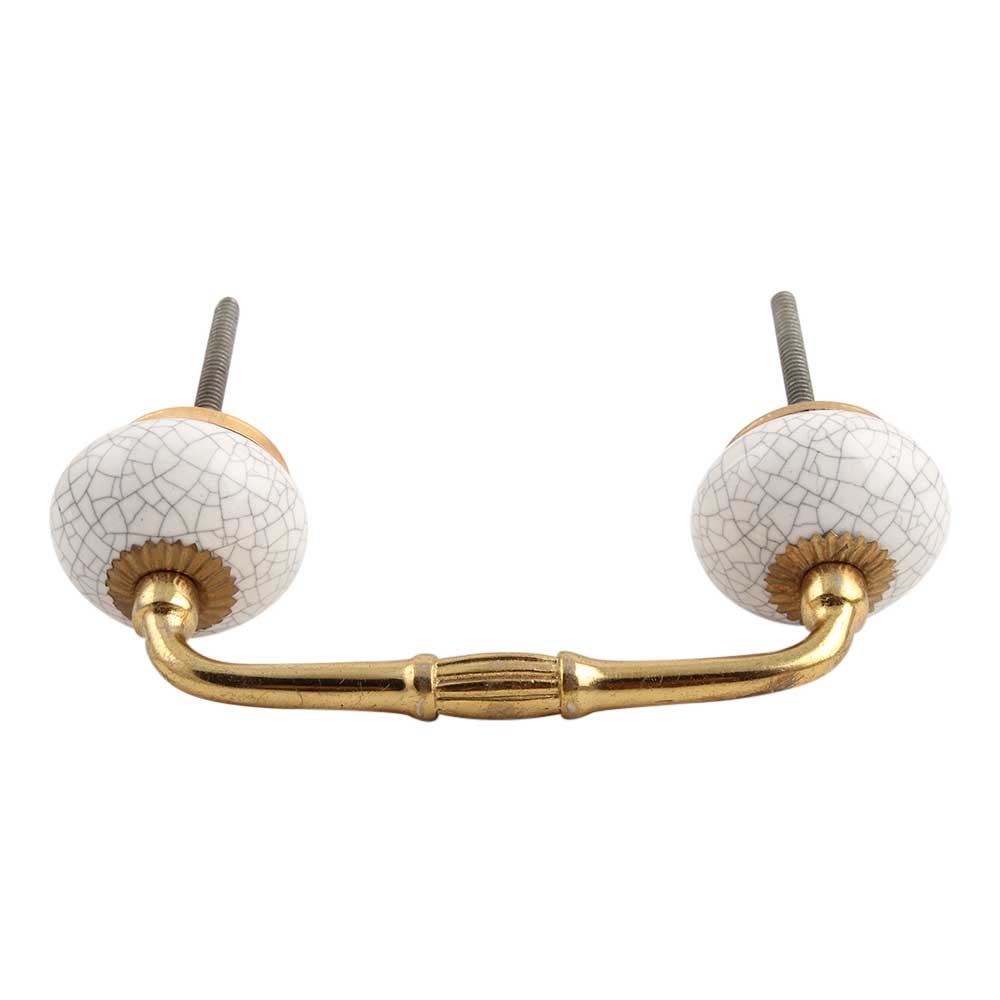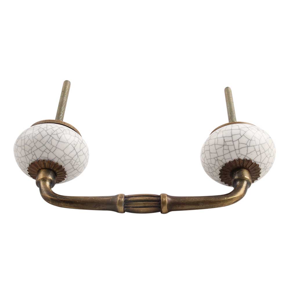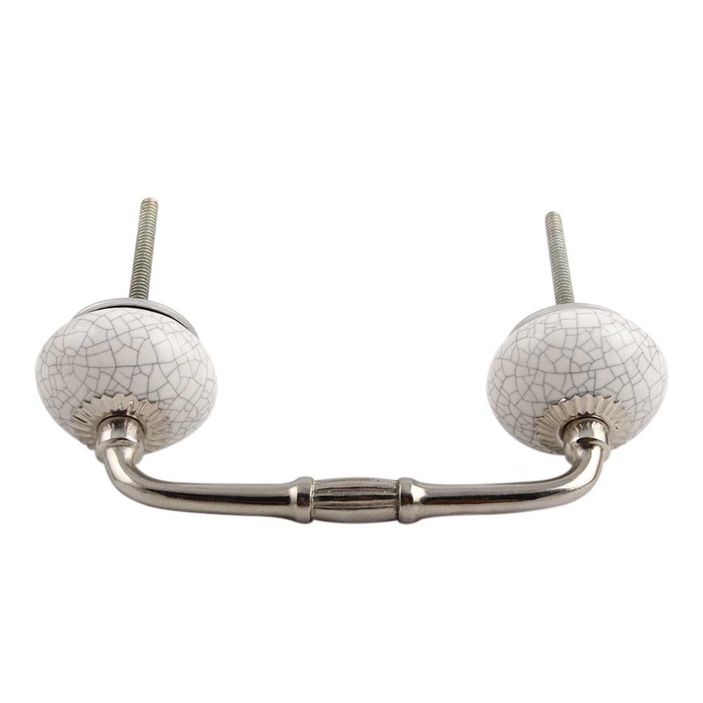 White Crackle Ceramic Bridge Handle. Ideal for Drawer, Dresser, Cabinet, Wardrobe, Cupboard and Almirah.