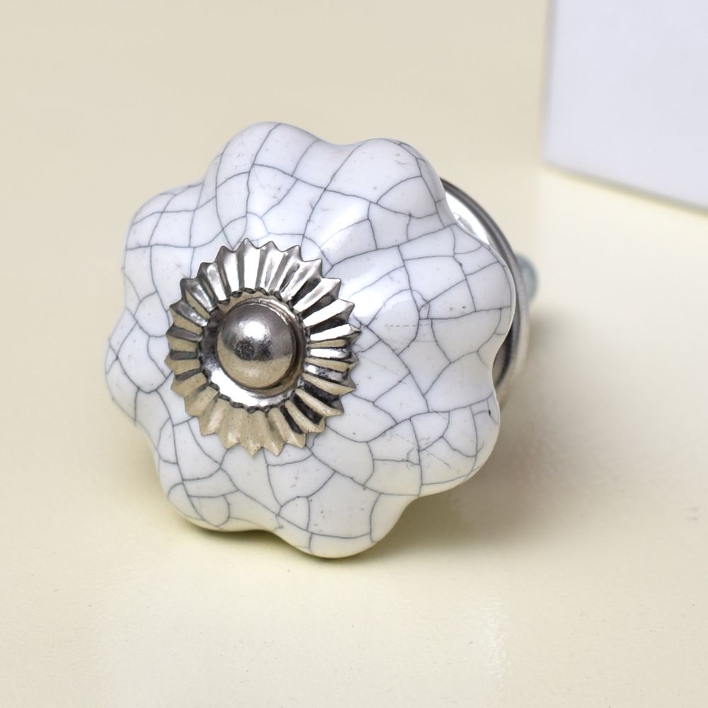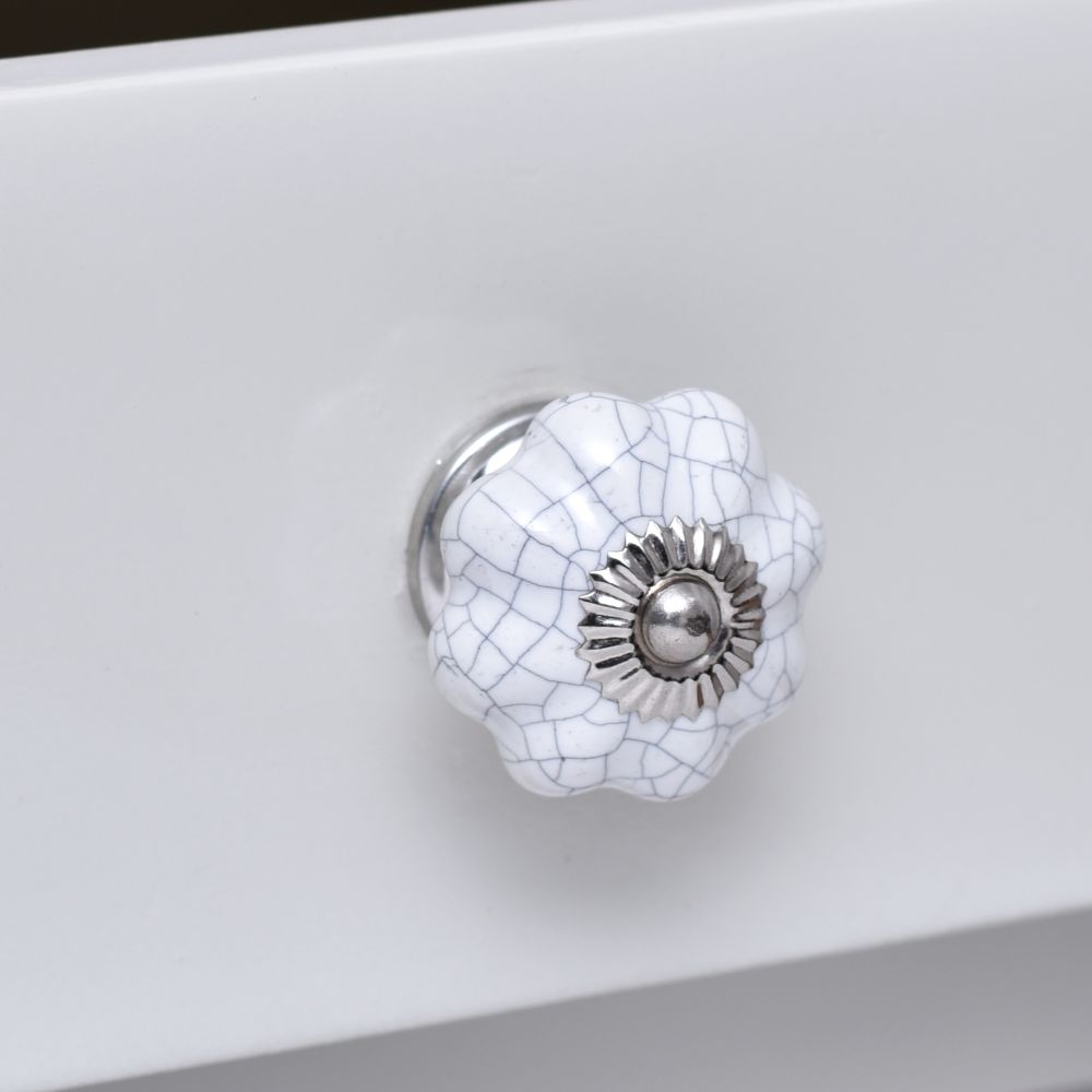 The combination of the melon shape and white crackle finish ensures that this knob remains a timeless addition to any home. Its vintage appeal works beautifully in both modern and classic interiors.