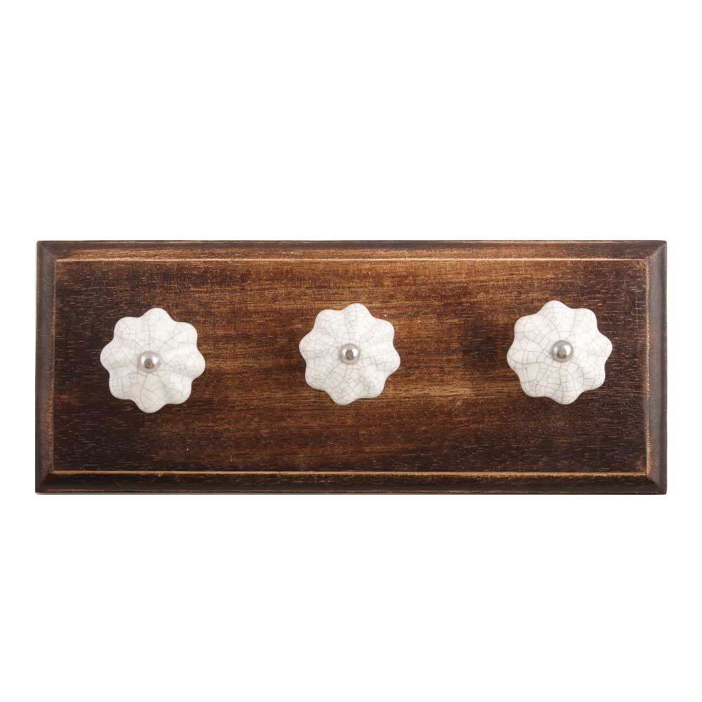 White Crackle Ceramic Melon Wooden Hook. A Perfect Complement to the Soft Tone of the Wood are these White Traditional Hat & Coat Hook Made of Genuine Porcelain and Brass. It can be use to Hang Jewellery, Leashes, Towels, Scarves, Light Weight Sweaters, Caps Etc.