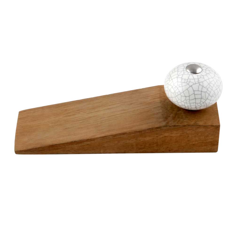 Handmade Ceramic and Wooden Door Stopper.Wooden Door Stopper with a Ceramic Knob to Carry it Easily. This Wooden Door Stopper has Glue Dots under it to Ensure that it does not Slip. It is Handmade by the Craftsmen of India and this Innovative Door Stopper won't Disappoint You.