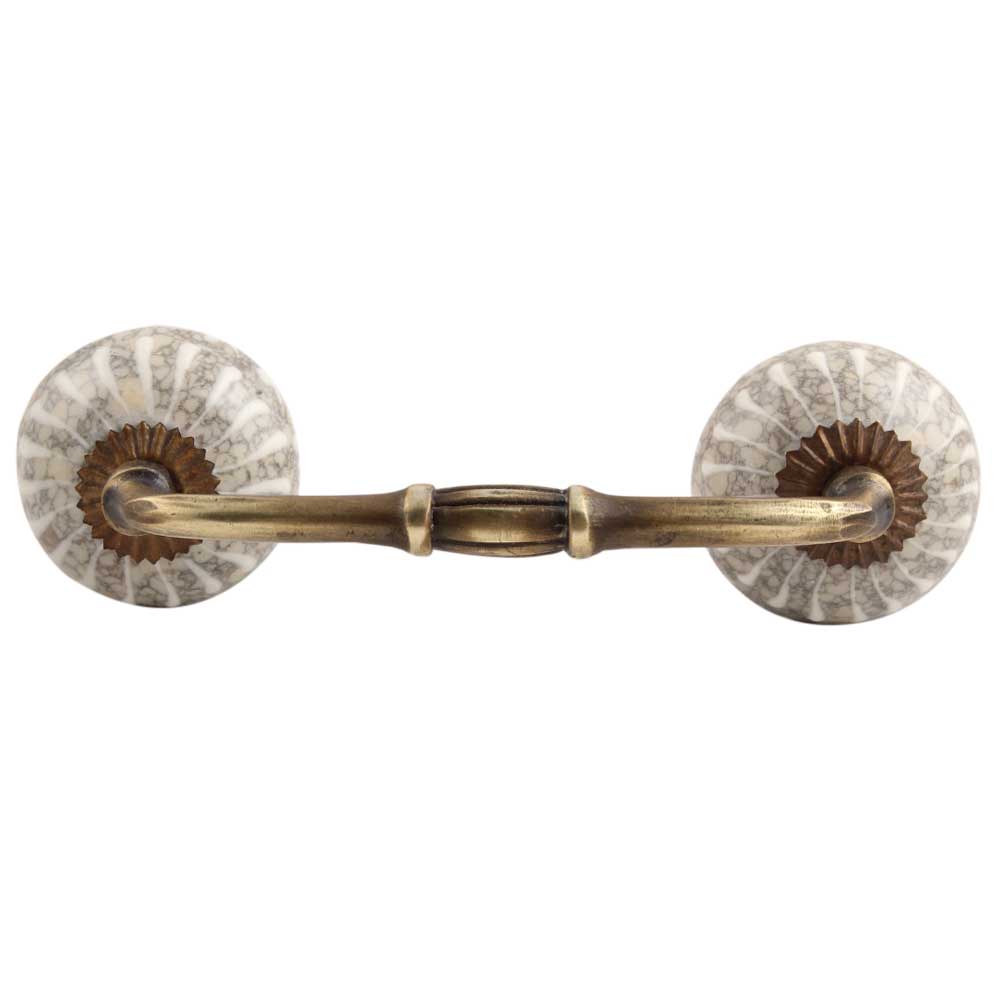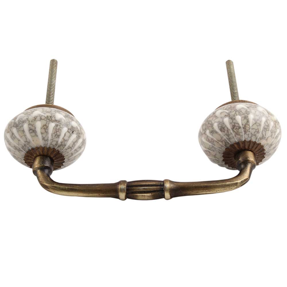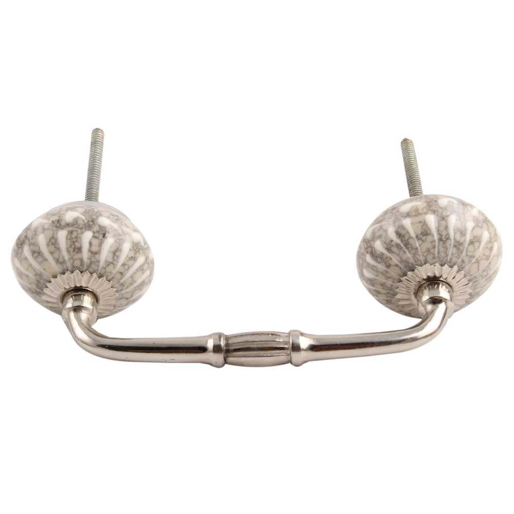 White Crackle Wheel Ceramic Bridge Handle .Ideal for kitchen Cabinet, kitchen Drawer, Dining Room, Bed Room, Chest Drawer, Dressing Table, Almirah.