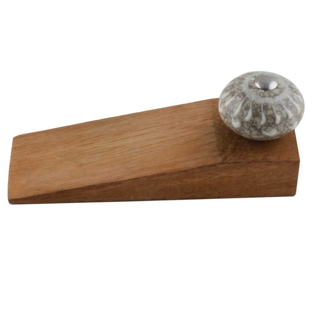 Handmade Ceramic and Wooden Door Stopper.Wooden Door Stopper with a Ceramic Knob to Carry it Easily. This Wooden Door Stopper has Glue Dots under it to Ensure that it does not Slip. It is Handmade by the Craftsmen of India and this Innovative Door Stopper won't Disappoint You.