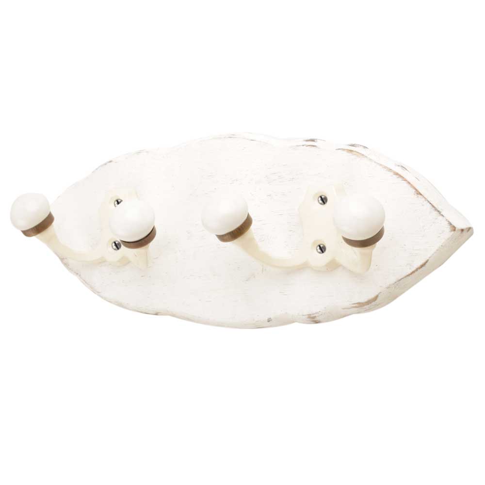 White Cream Double Loop Ceramic Iron Wooden Hooks. A Perfect Complement to the Soft Tone of the Wood are these White Traditional Hat & Coat Hook Made of Genuine Porcelain and Brass. It can be use to Hang Jewellery, Leashes, Towels, Scarves, Light Weight Sweaters, Caps Etc.
