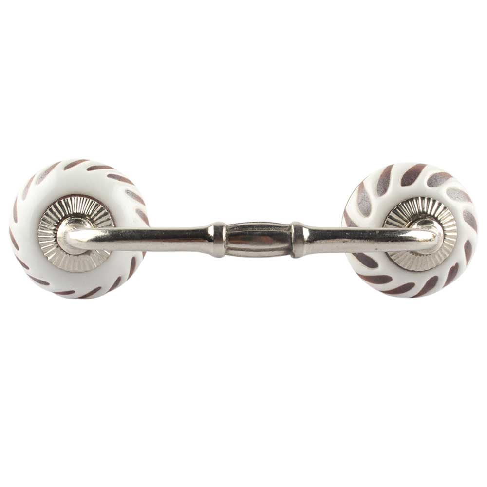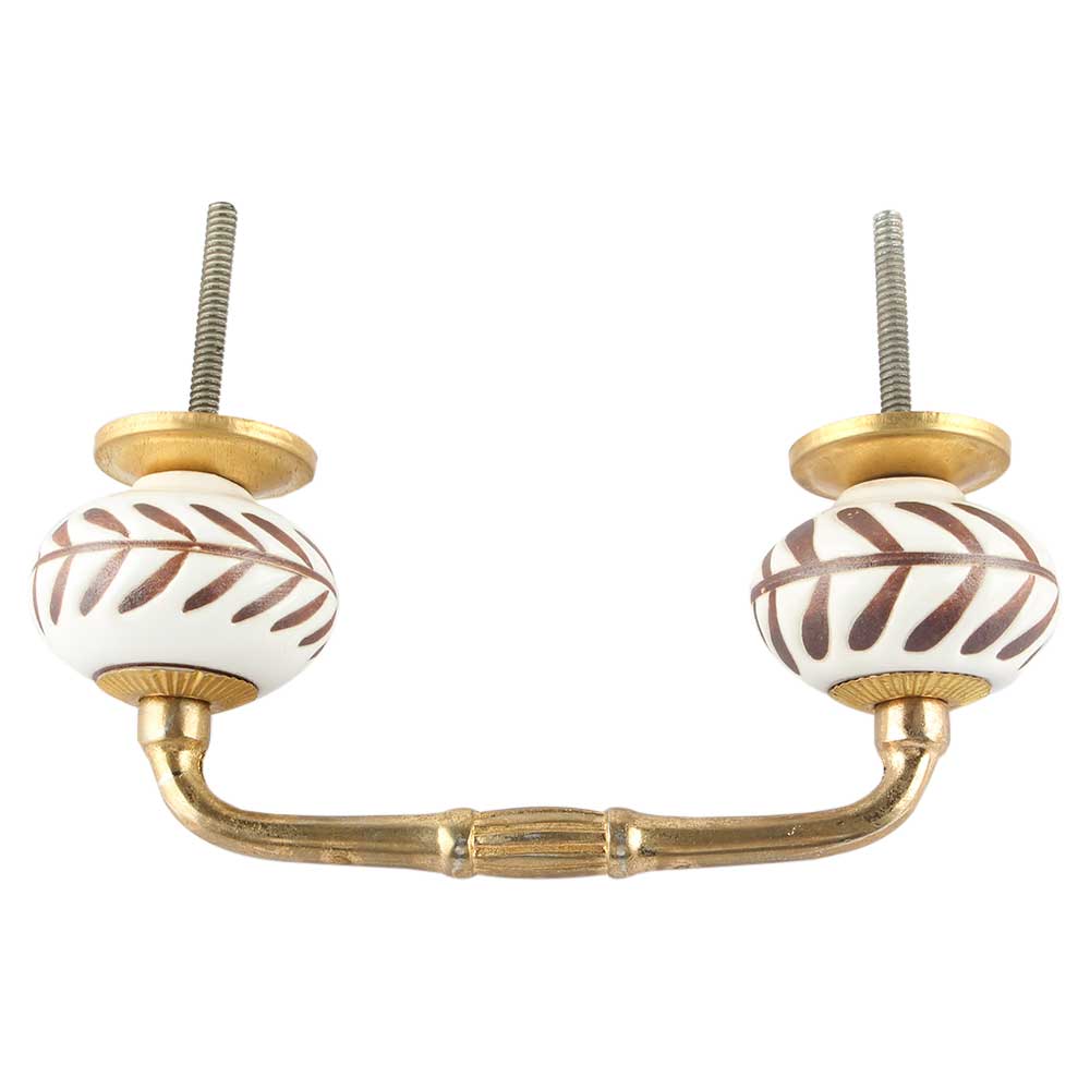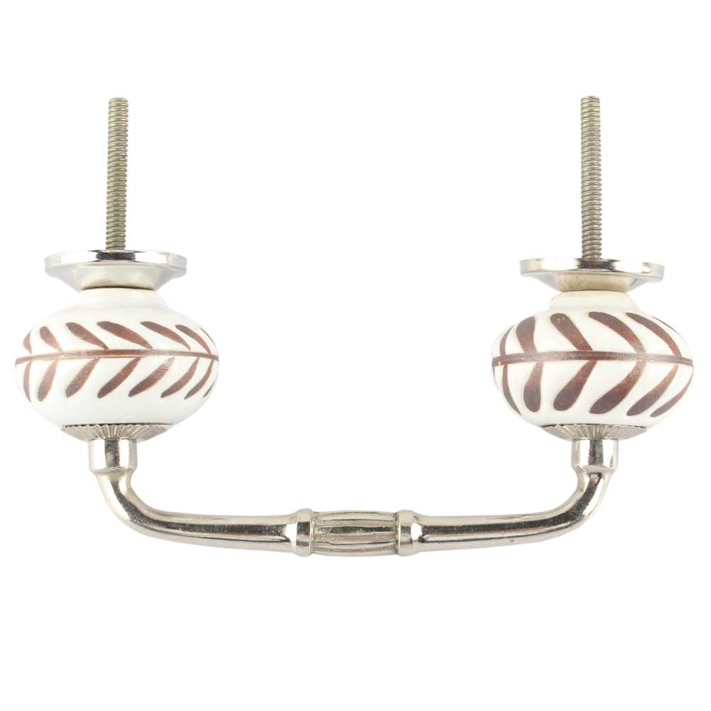White Etched Ceramic Floral Bridge Handles. Ideal for Drawer, Dresser, Cabinet, Wardrobe, Cupboard and Almirah etc.