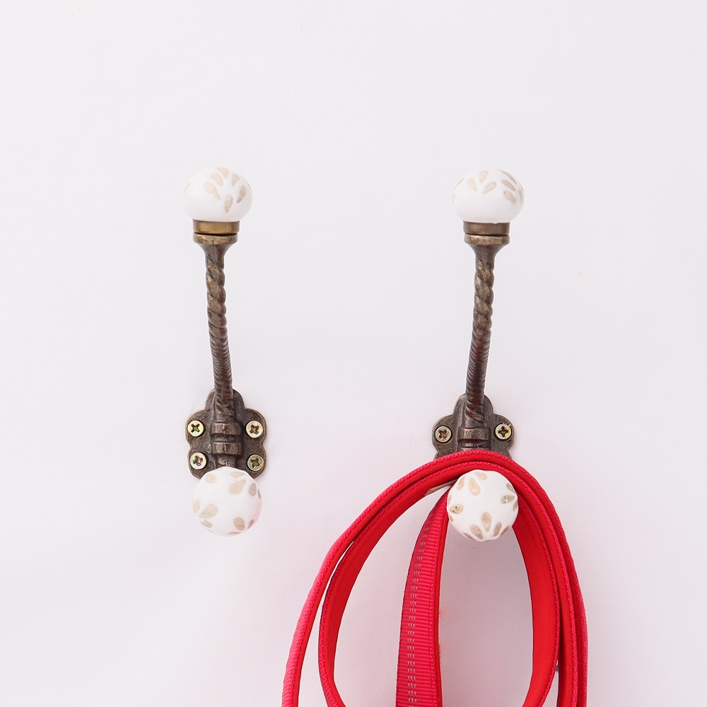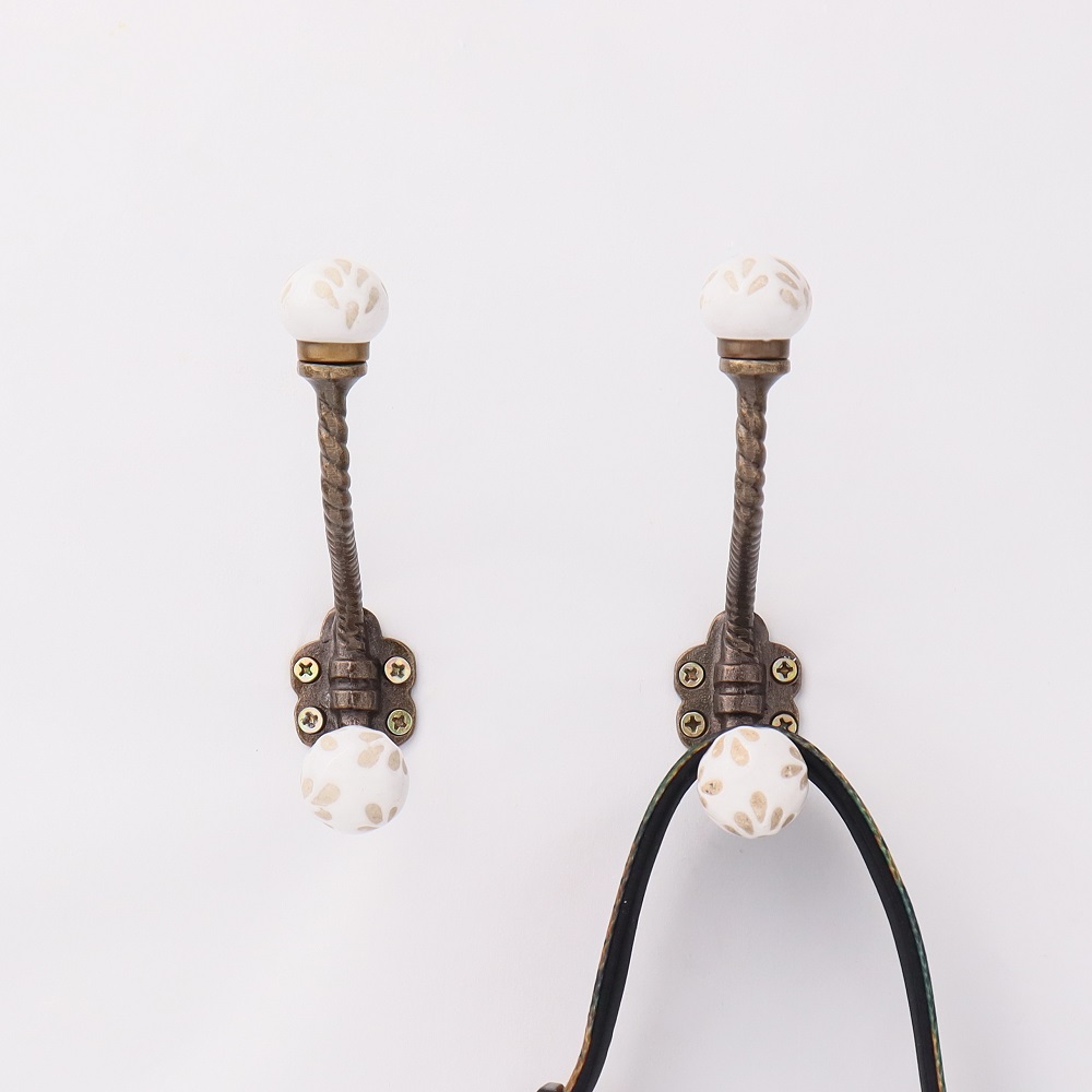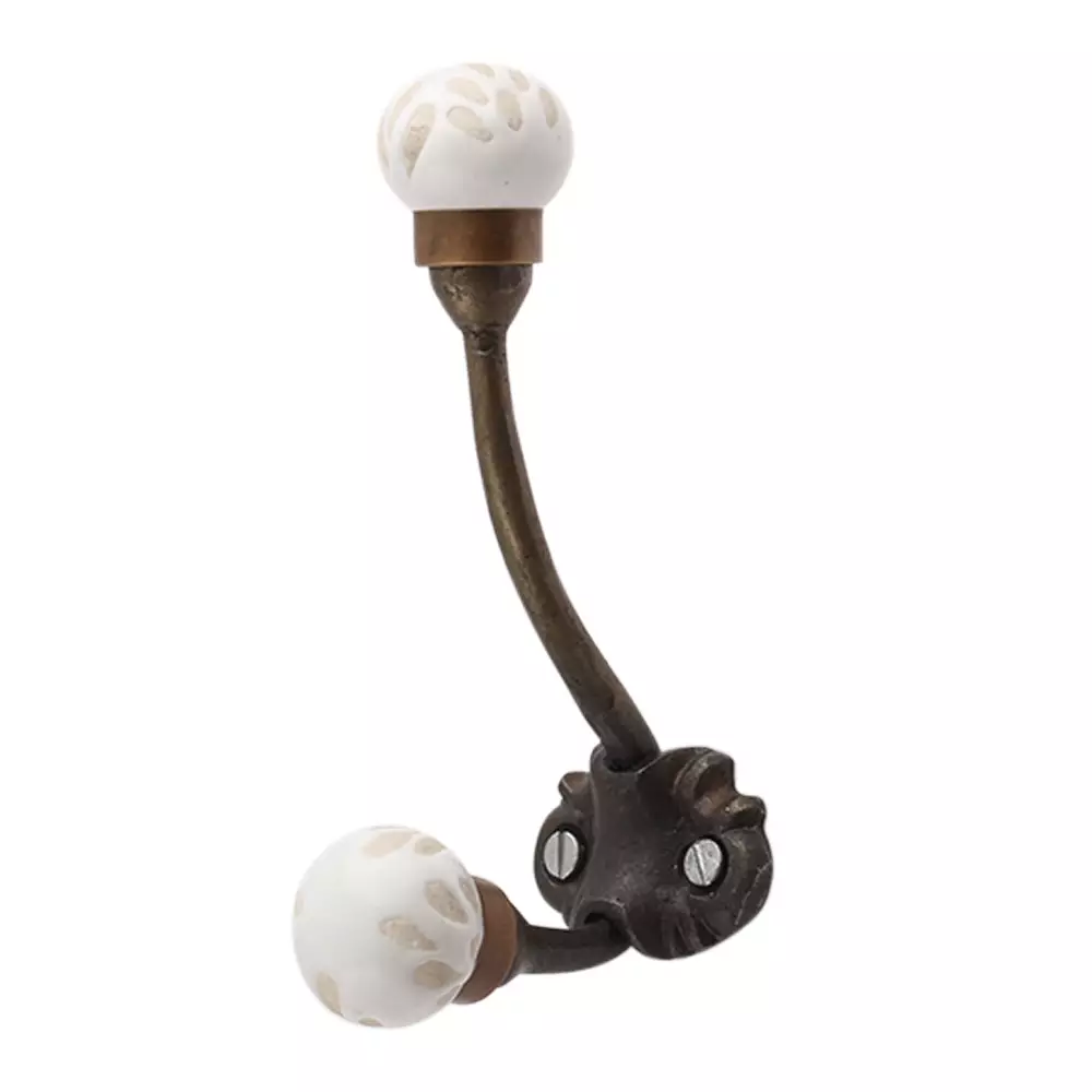 White Etched Ceramic Iron Hook-Ehg-93. When Put on Wall or Cabinet It is An Art in Itself. This Hook is Strong Enough to Hold Your Cloths, Keys, Tea Cups, Coffee Mugs, Hand Towels Etc.
