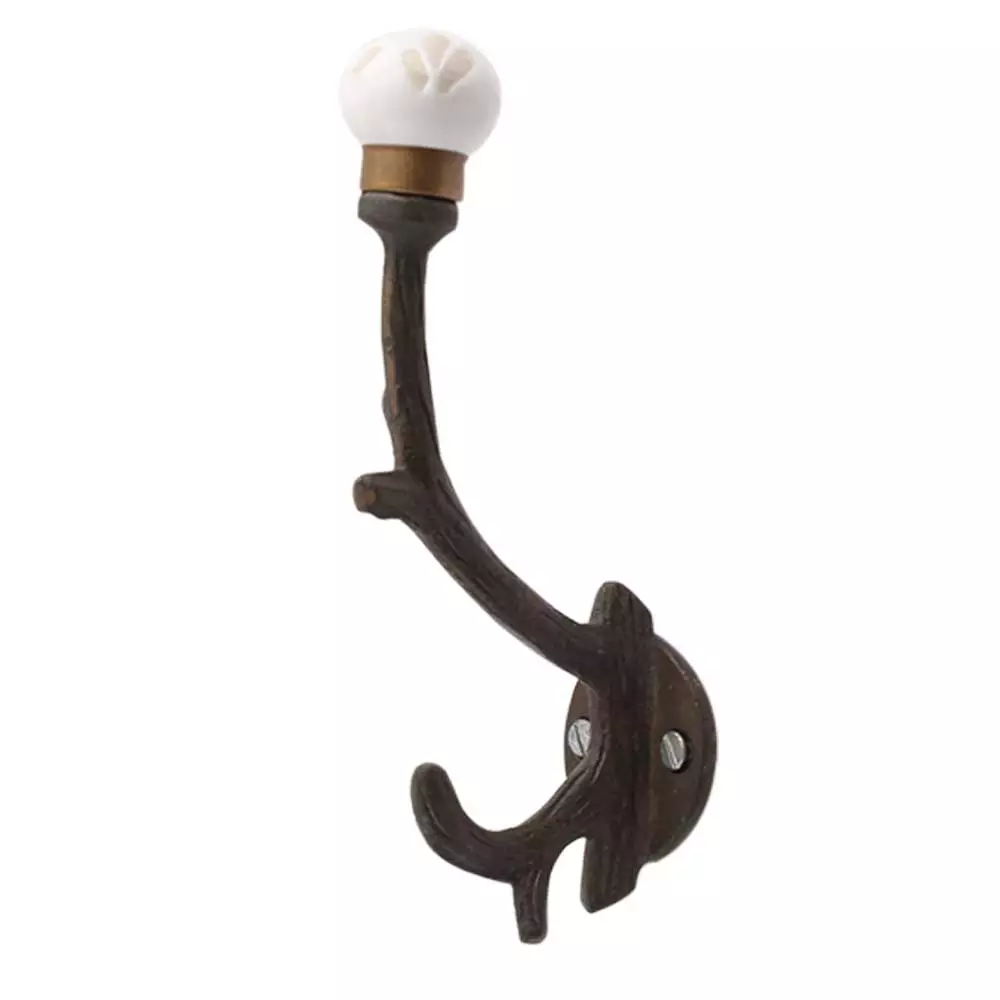 White Etched Ceramic Tree Hook-Ehg-93. When Put on Wall or Cabinet It is An Art in Itself. This Hook is Strong Enough to Hold Your Cloths, Keys, Tea Cups, Coffee Mugs, Hand Towels Etc.
