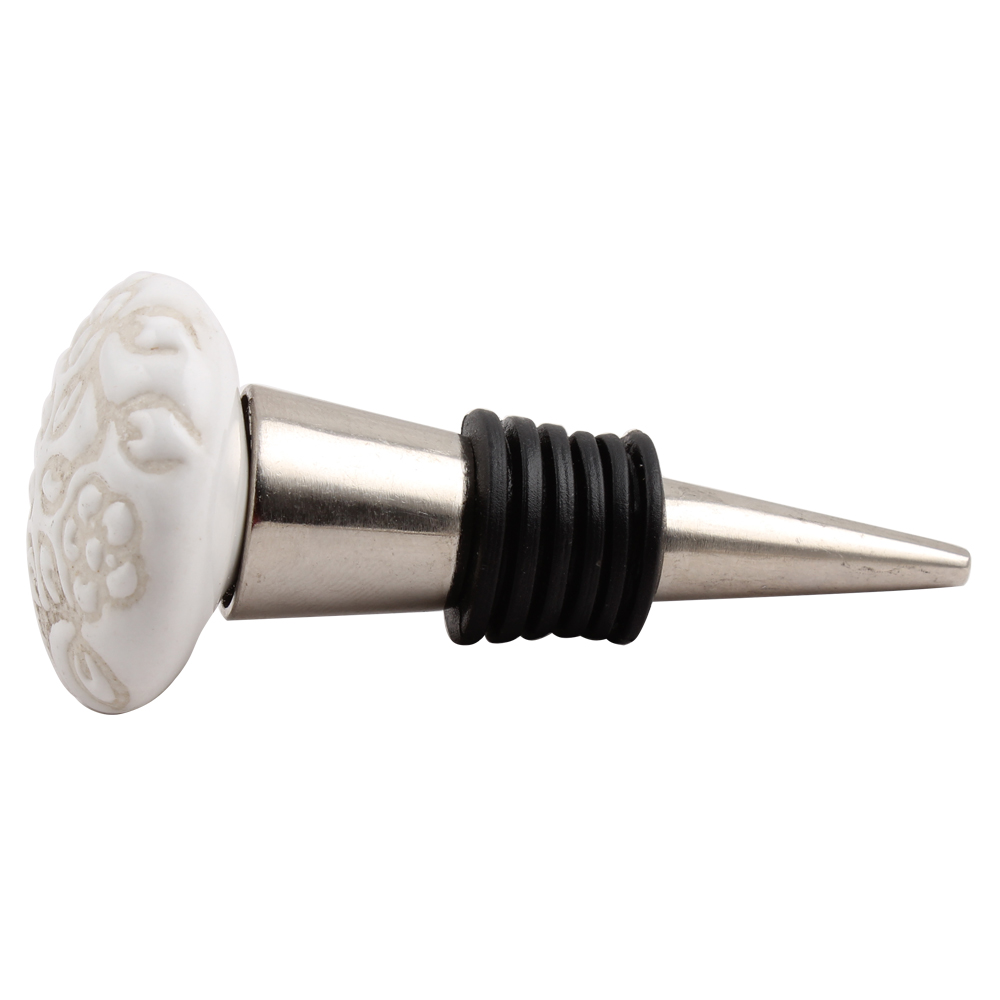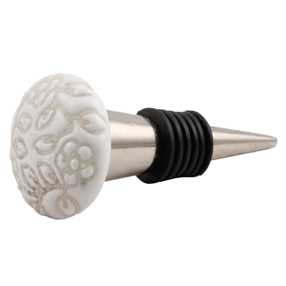 White Etched Ceramic Wine Stopper.zinc alloy wine bottle stopper.