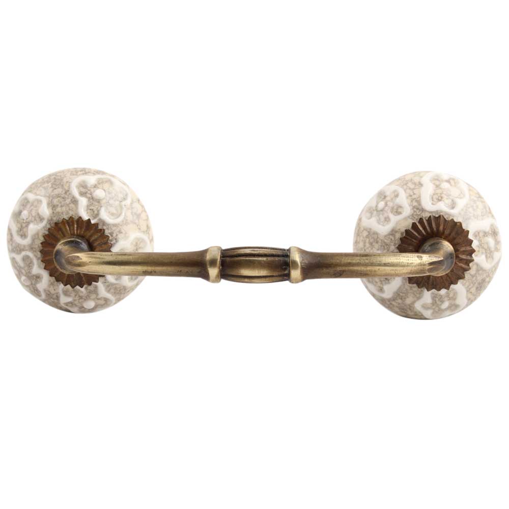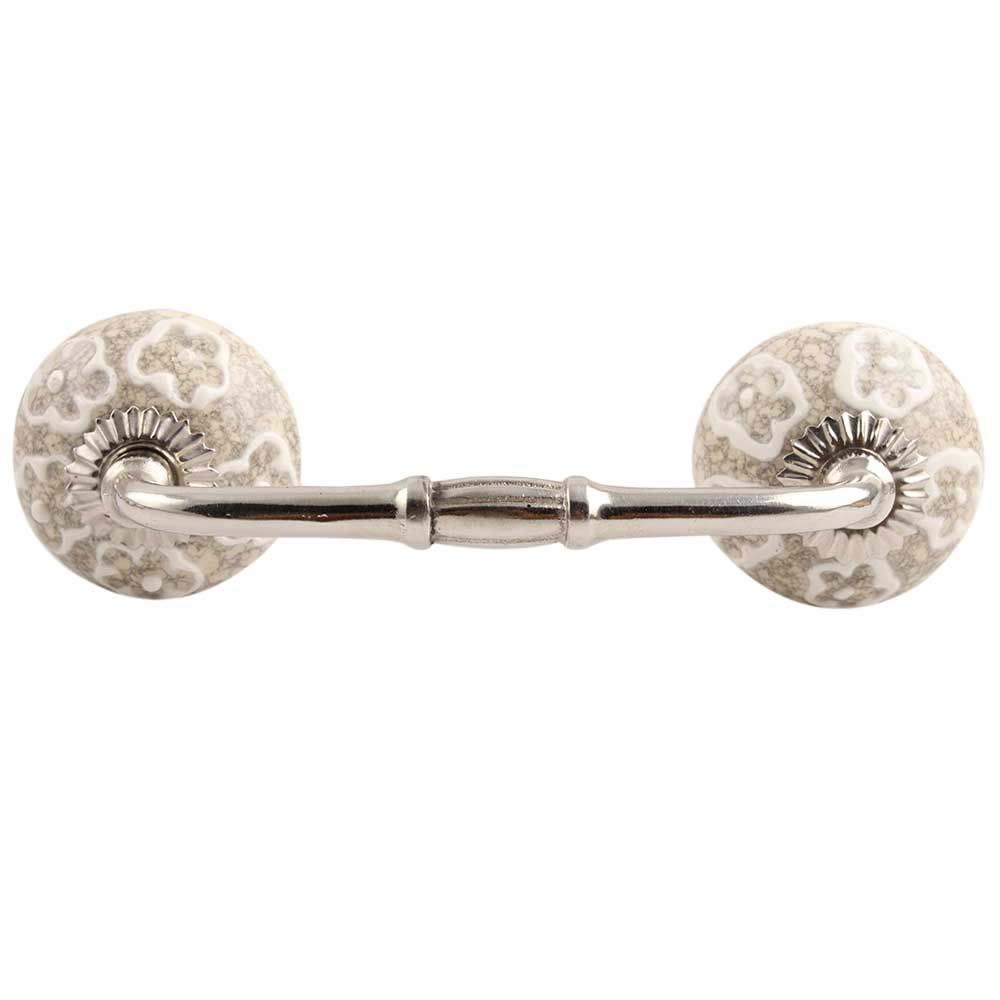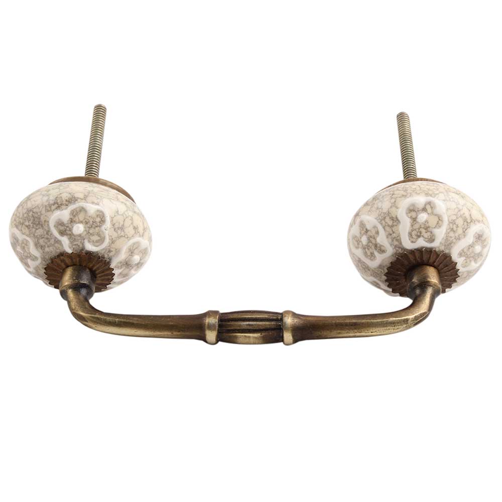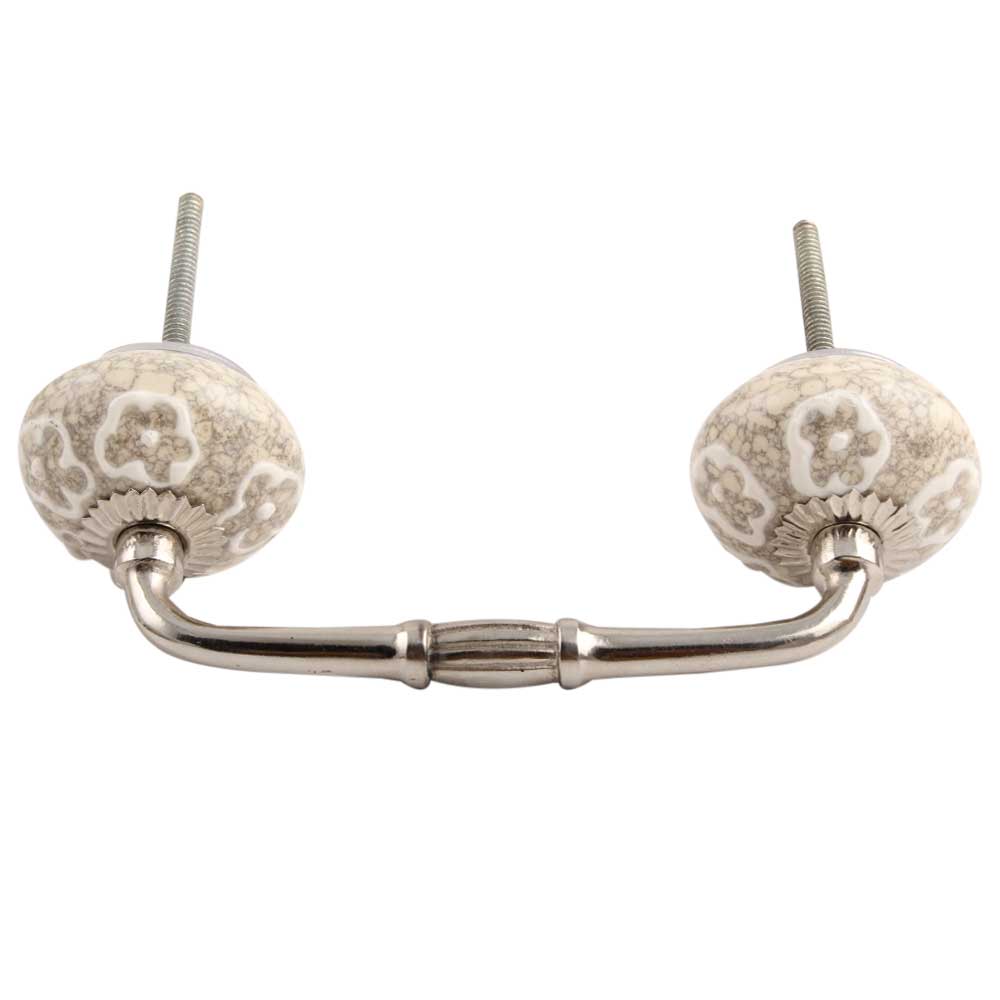 White Floral Crackle Ceramic Bridge Handle.Ideal for kitchen Cabinet, kitchen Drawer, Dining Room, Bed Room, Chest Drawer, Dressing Table, Almirah.