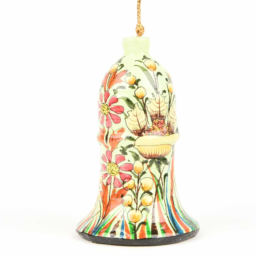 White Floral Hand Painted Hanging Paper Mache Bell