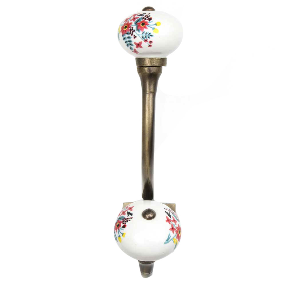 White Floral Ceramic Wall Hook with Antique Iron – Hand-Painted Decorative Hook for Home Storage
