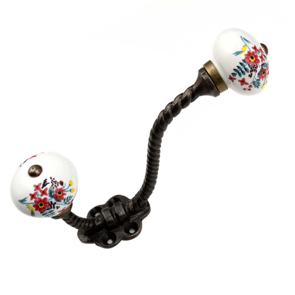 White Floral Leafy Painted Antique Rope Ceramic Iron Hook – Single Piece