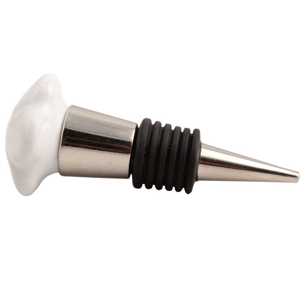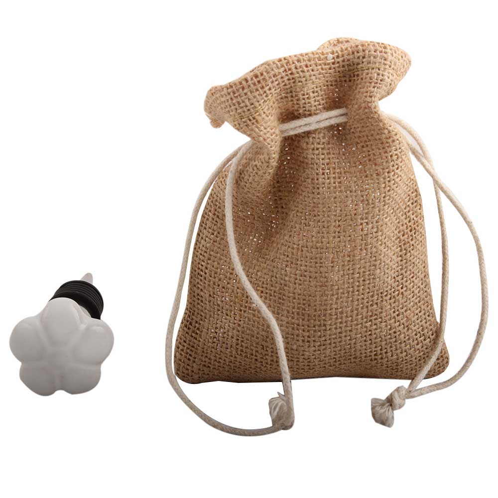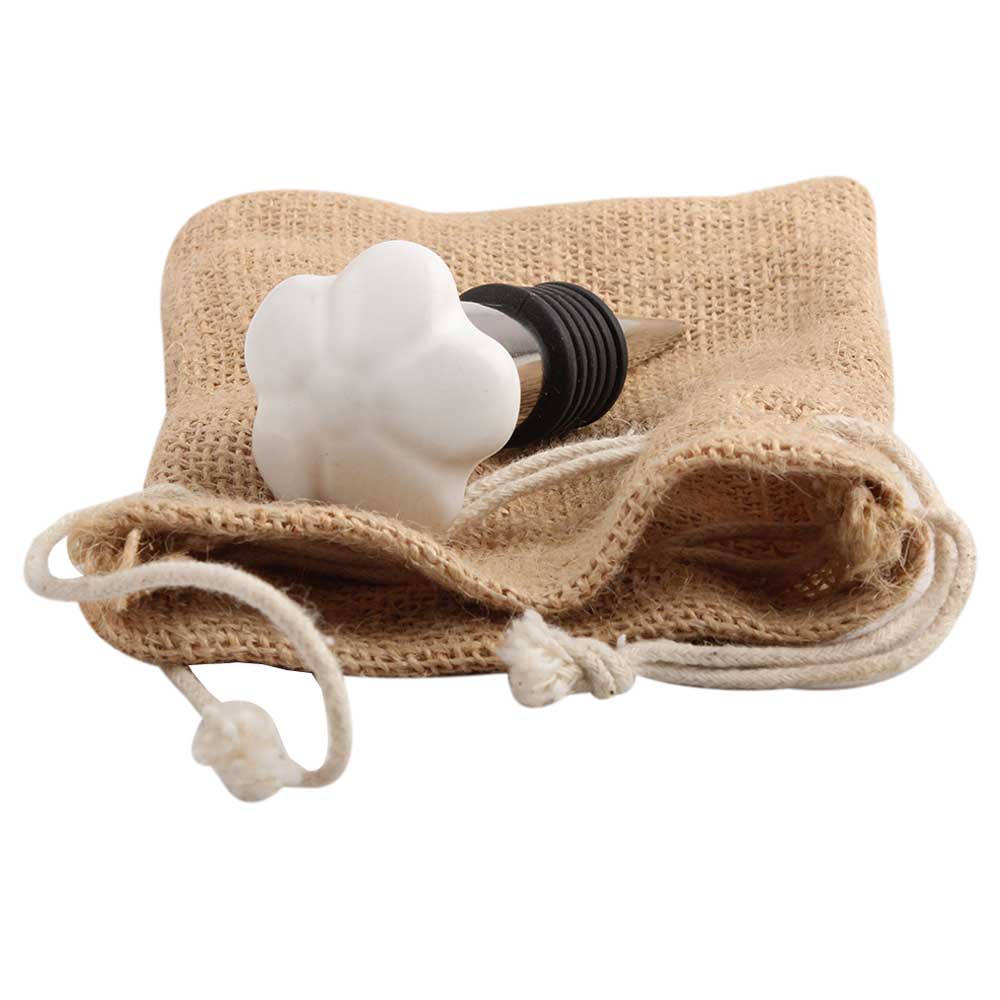 White Flower Ceramic Wine Stopper.zinc alloy wine bottle stopper with attractive Jute Bag Packaging.