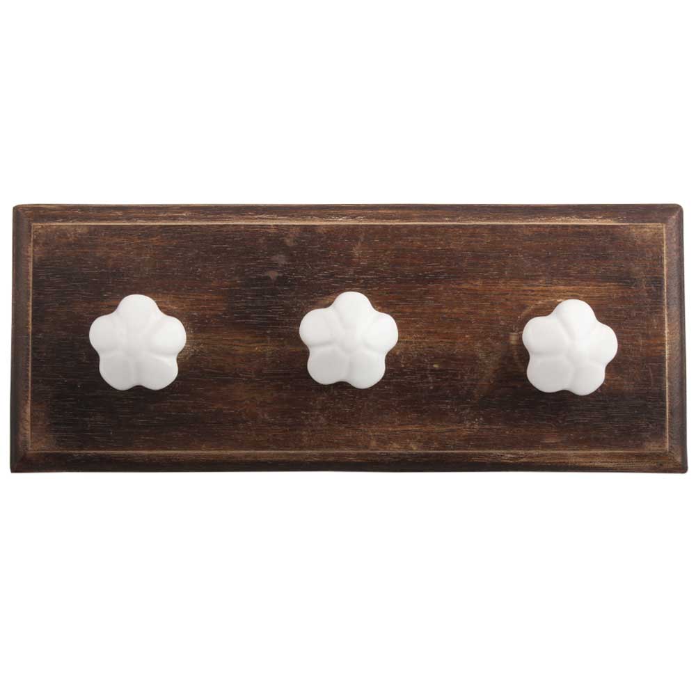 White Flower Ceramic Wooden Hook. A Perfect Complement to the Soft Tone of the Wood are these White Traditional Hat & Coat Hook Made of Genuine Porcelain and Brass. It can be use to Hang Jewellery, Leashes, Towels, Scarves, Light Weight Sweaters, Caps Etc.