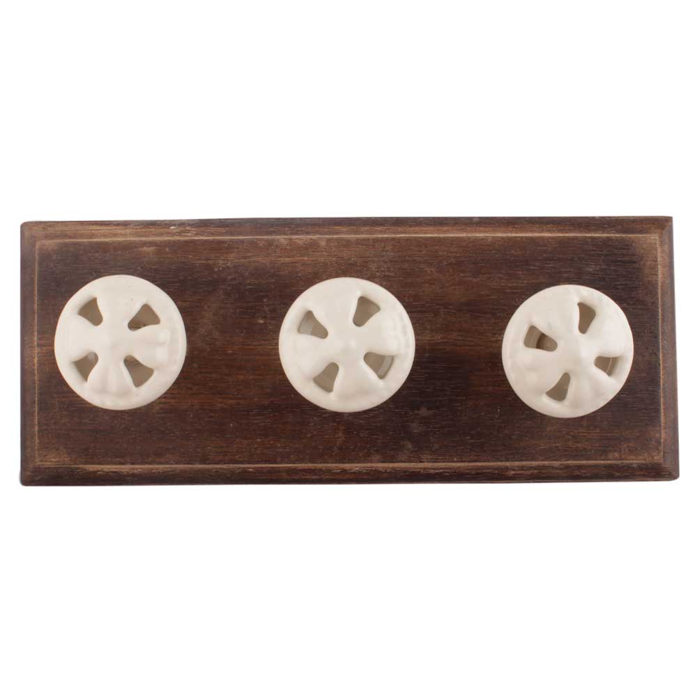White Flower Ceramic Wooden Hooks. A Perfect Complement to the Soft Tone of the Wood are these White Traditional Hat and Coat Hook Made of Genuine Porcelain and Brass. It can be used to Hang Jewelry, Leashes, Towels, Scarves, Light Weight Sweaters, Caps etc.