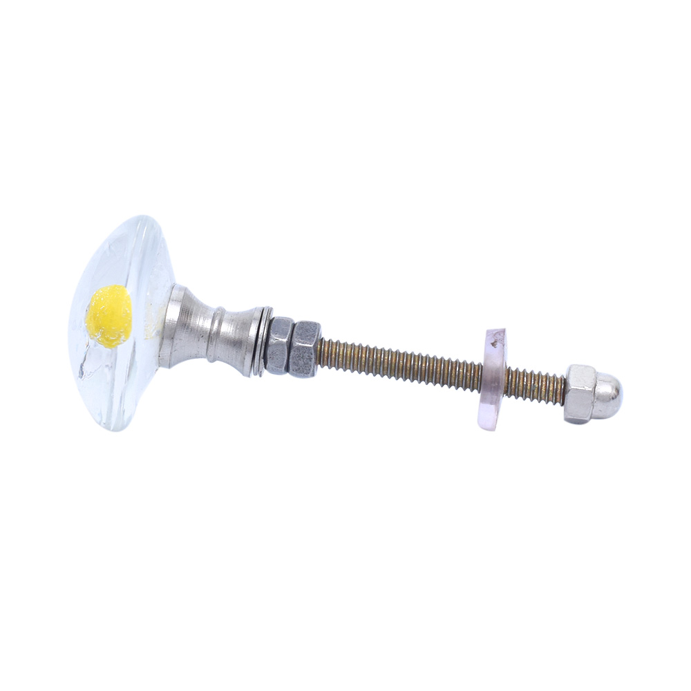 Crafted from high-quality glass, these knobs feature a detailed white flower design, making them an ideal choice for any room. The simplicity and elegance of the white flower engraving blend seamlessly with modern, vintage, and transitional interiors. The smooth glass surface offers a subtle shine that enhances any space.