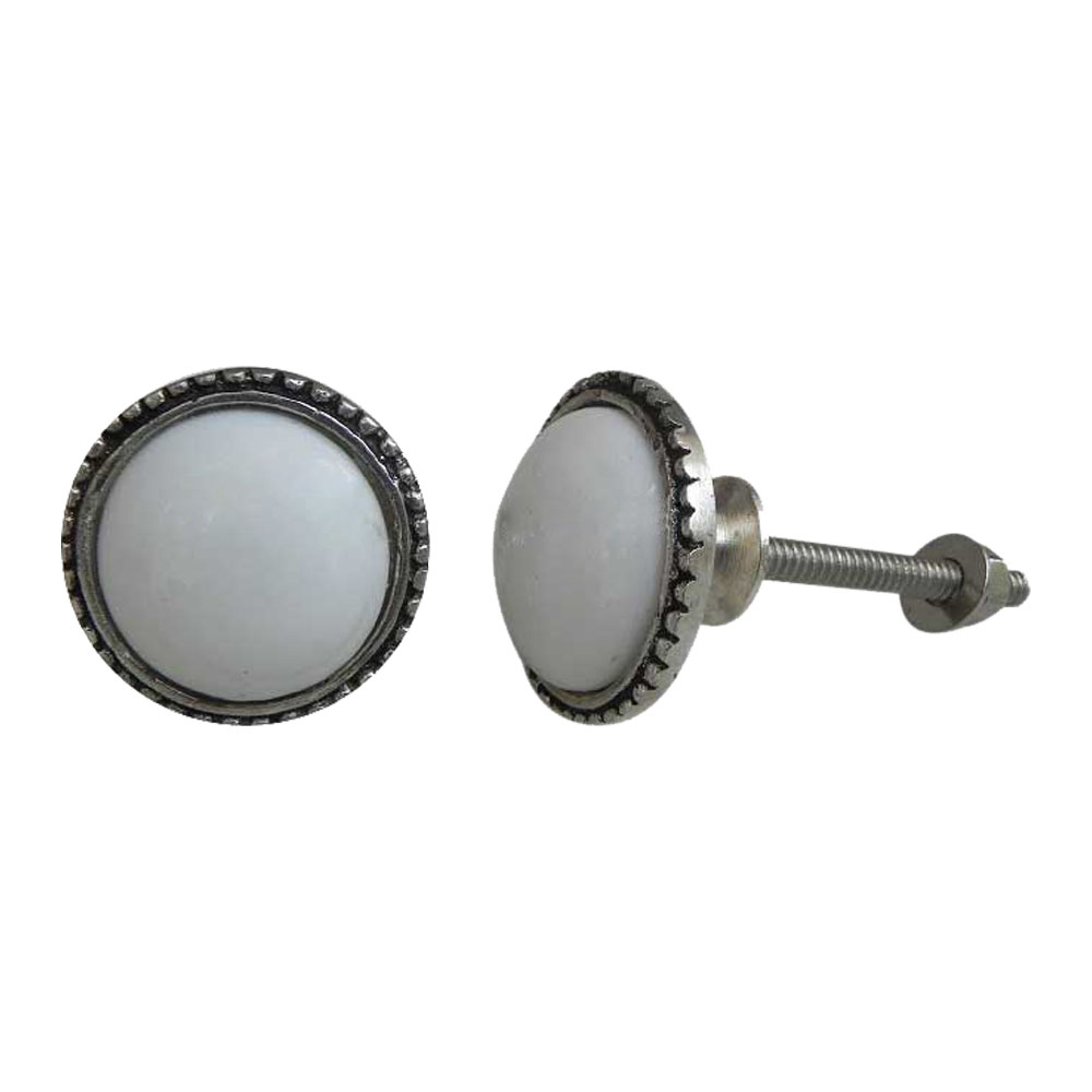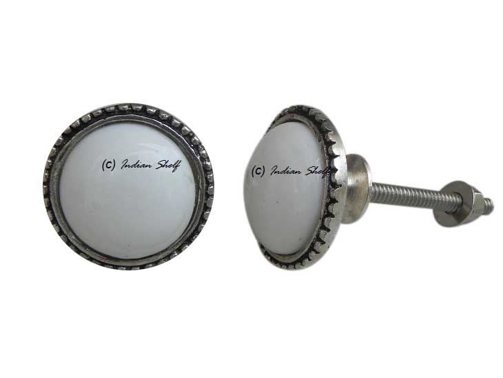 White Glass Metal Round Knobs. Ideal for Drawer, Dresser, Cabinet, Wardrobe, Cupboard and Almirah.