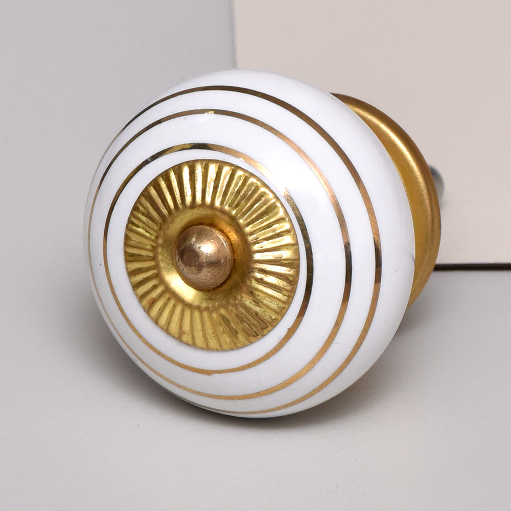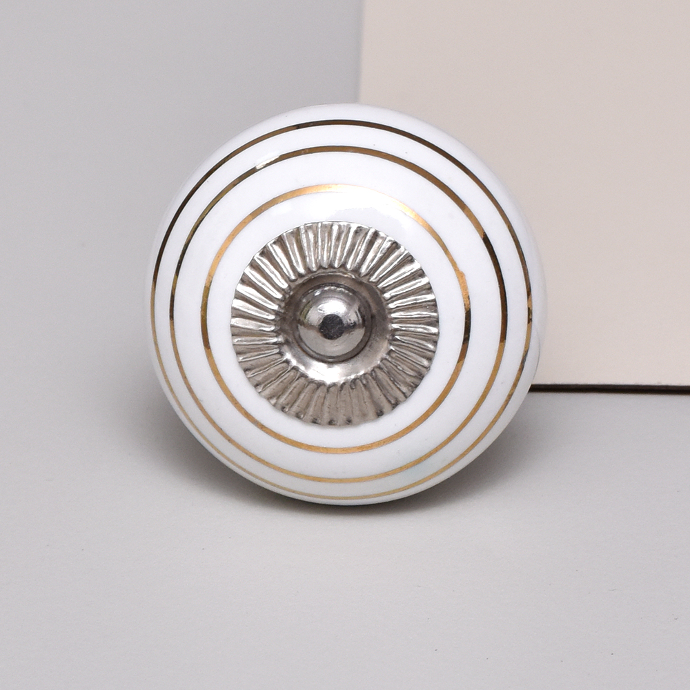 Elevate your furniture with the White Golden Line Ceramic Knob. This knob features a sleek white base adorned with elegant golden lines, embodying modern luxury and style. It's an ideal choice for refreshing the appearance of your cabinets, drawers, and dressers, offering a minimalist yet chic design that seamlessly enhances any furniture piece.