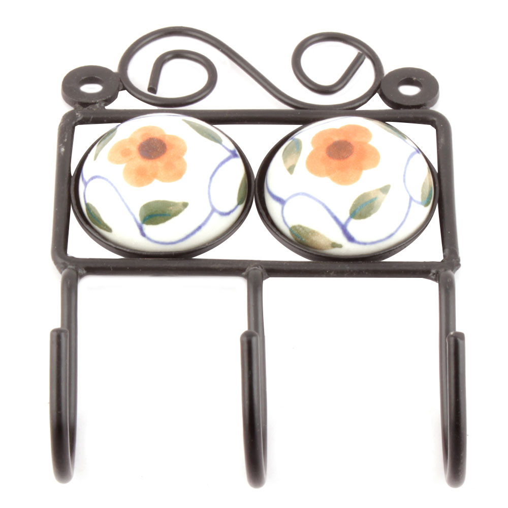Green Leaf Floral Ceramic Tiles Hooks Online. When Put on Wall or Cabinet it is an Art in itself. The Metal Part of this Hook is Black Powder Coated.