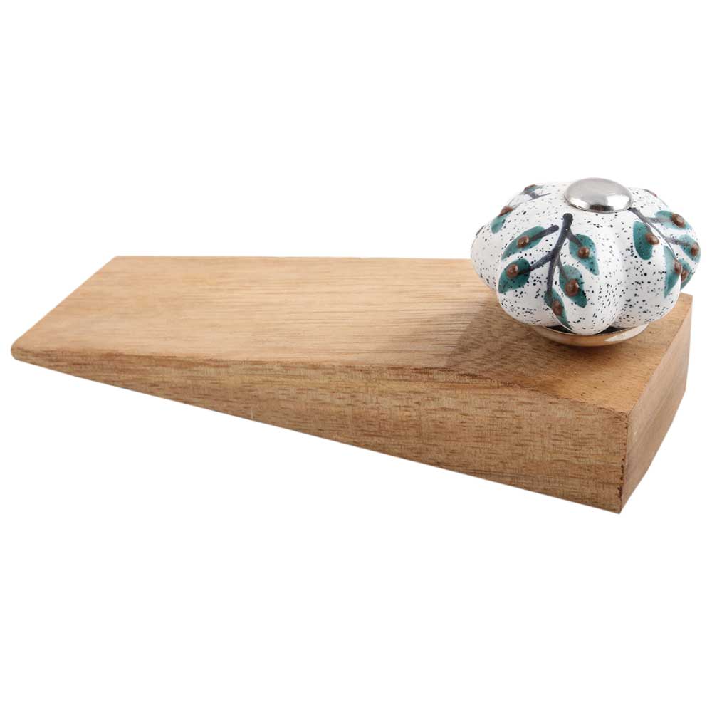 Introducing the White Green Leaf Melon Ceramic Wooden Door Stopper — a stylish and practical home accessory that enhances any room. The beautifully designed ceramic features delicate green leaves set against a soft white background, complemented by a sturdy wooden base. Perfect for protecting your doors and walls, this door stopper also adds a touch of nature-inspired beauty to your home décor.