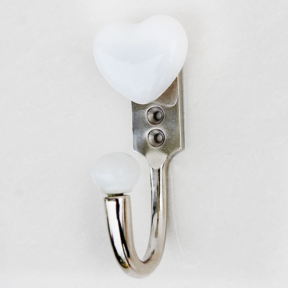 White Heart Ceramic Hook. When Put on Wall or Cabinet It is An Art in Itself. This Hook is Strong Enough to Hold Your Keys, Tea Cups, Hand Towels, Cloths Etc.