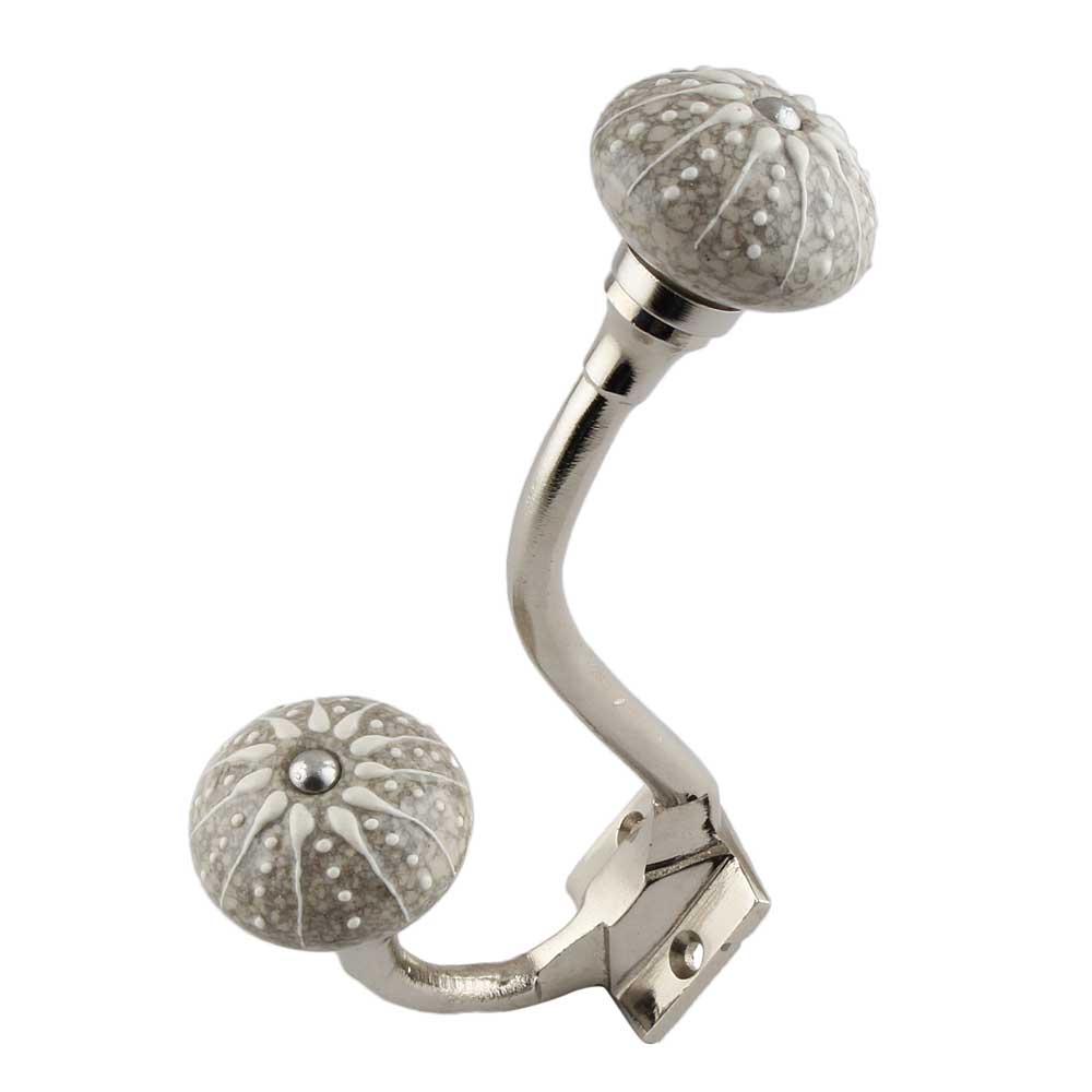 White Intricate Design Embossed Ceramic Crackle Silver Iron Hook. This Hook is Strong Enough to Hold Your Cloths, Keys, Tea Cups, Coffee Mugs, Hand Towels etc.