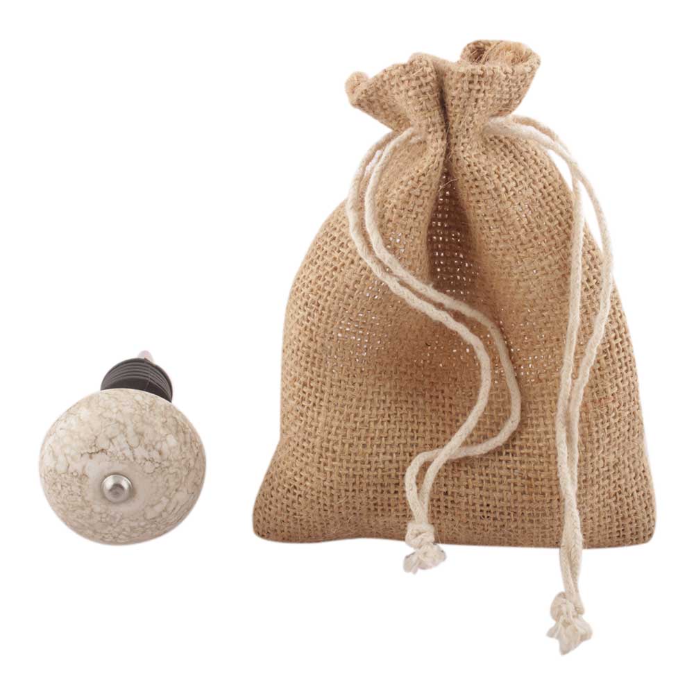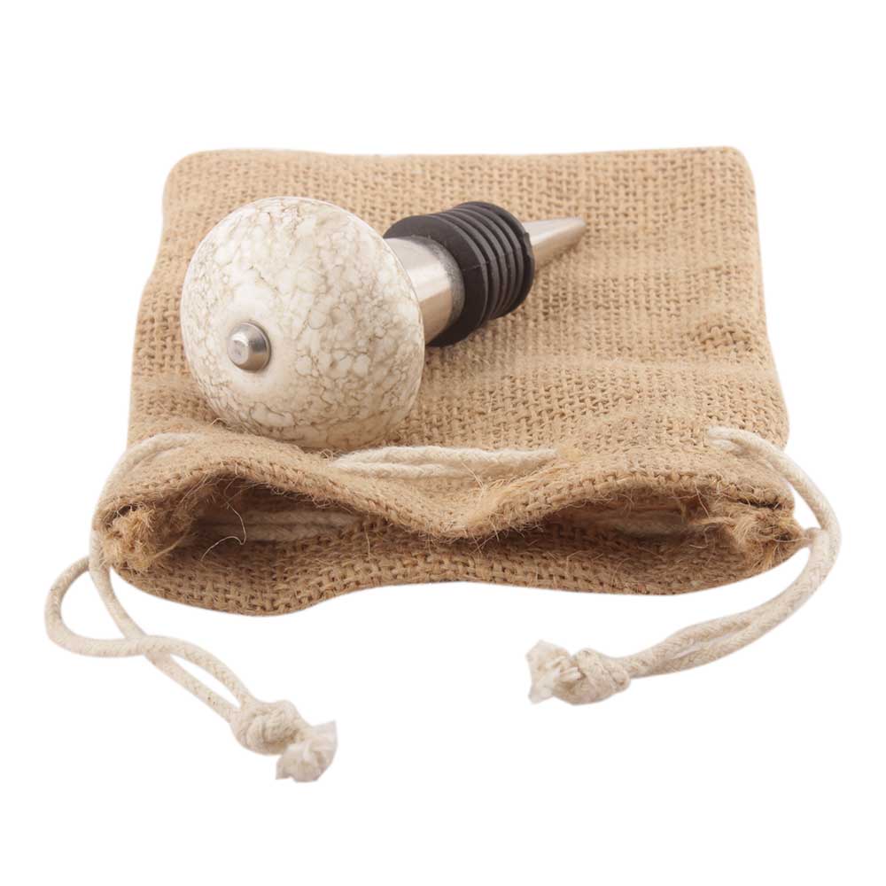 White Marble Ceramic Floral Wine Stopper. Zinc Alloy Wine Bottle Stopper with Attractive Jute Bag Packaging.
