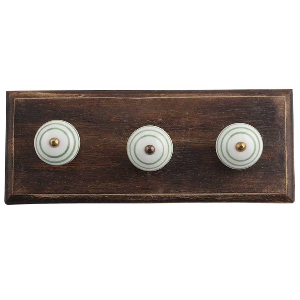 White Pea Green Strip Wooden Hooks . A Perfect Complement to the Soft Tone of the Wood are these White Traditional Hat &Amp; Coat Hook Made of Genuine Porcelain and Brass. It can be use to Hang Jewellery, Leashes, Towels, Scarves, Light Weight Sweaters, Caps Etc.