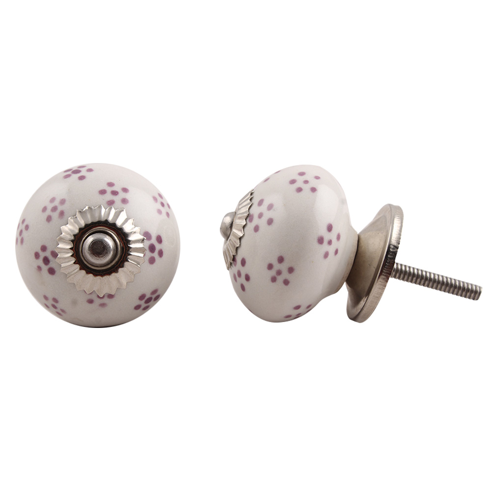 White Purple Dotted Floral knob, kitchen drawers, dining room, bed room, chest drawers, dressing tables, almirahs, etc.