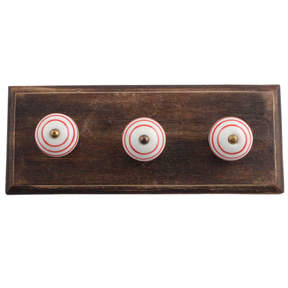 White Red Strip Wooden Hooks . A Perfect Complement to the Soft Tone of the Wood are these White Traditional Hat &Amp; Coat Hook Made of Genuine Porcelain and Brass. It can be use to Hang Jewellery, Leashes, Towels, Scarves, Light Weight Sweaters, Caps Etc.