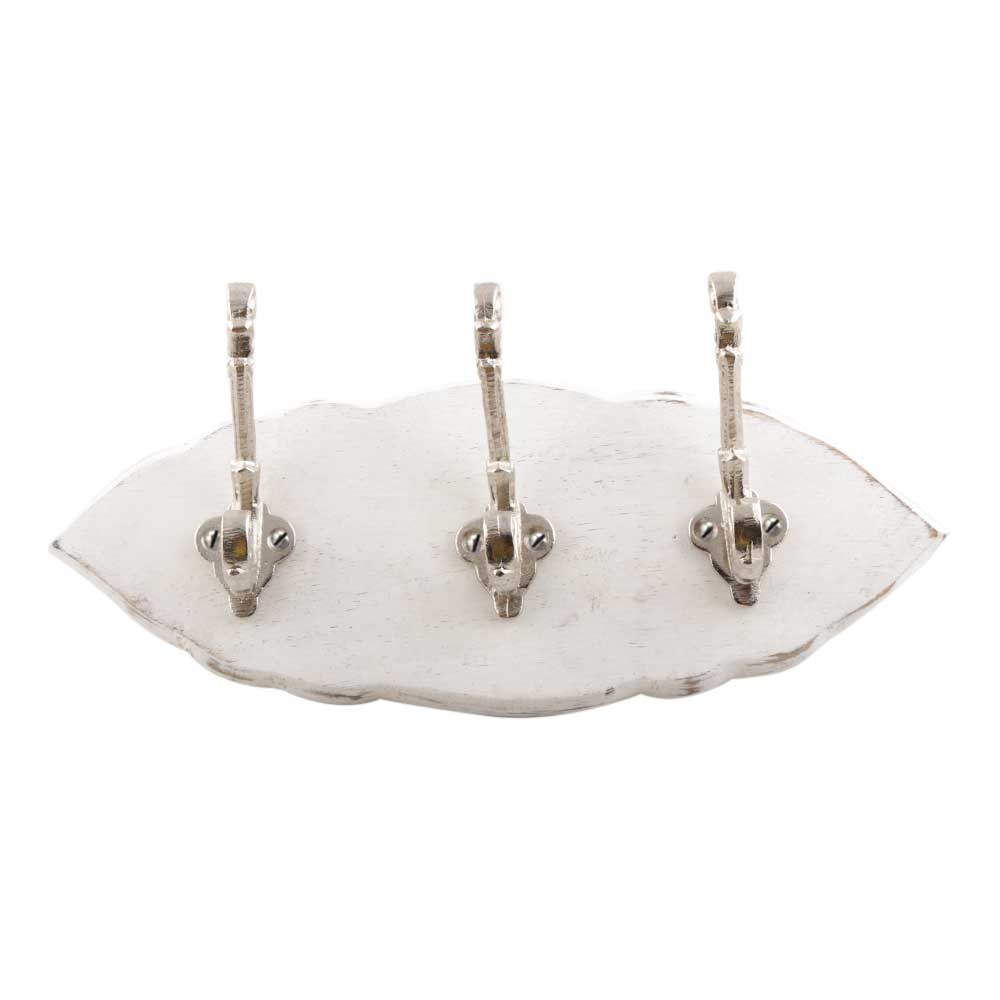 White And Silver Small Wall Wooden Iron Hooks. A Perfect Complement to the Soft Tone of the Wood are these White Traditional Hat & Coat Hook Made of Genuine Porcelain and Brass. It can be use to Hang Jewellery, Leashes, Towels, Scarves, Light Weight Sweaters, Caps Etc.