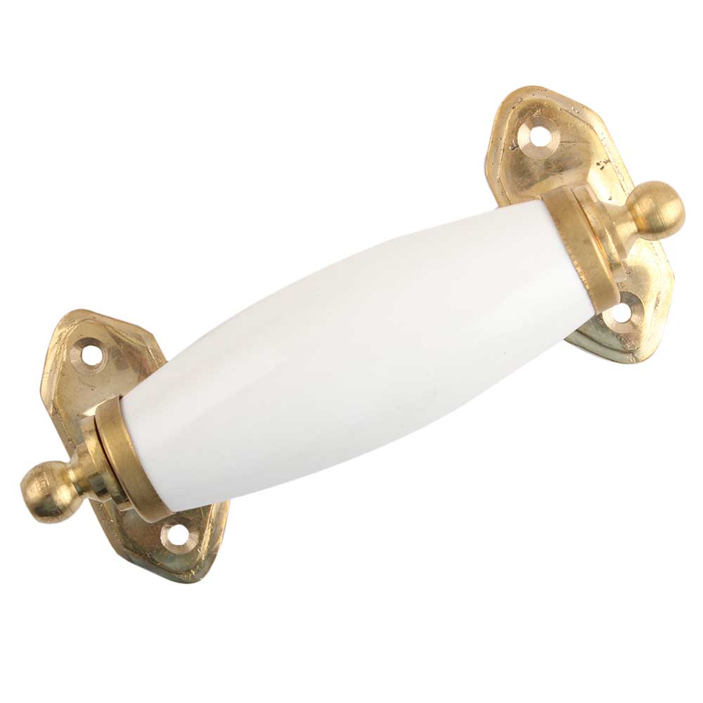 White Small Ceramic Golden Door Handle. Ideal for Drawer, Dresser, Cabinet, Wardrobe, Cupboard and Almirah.