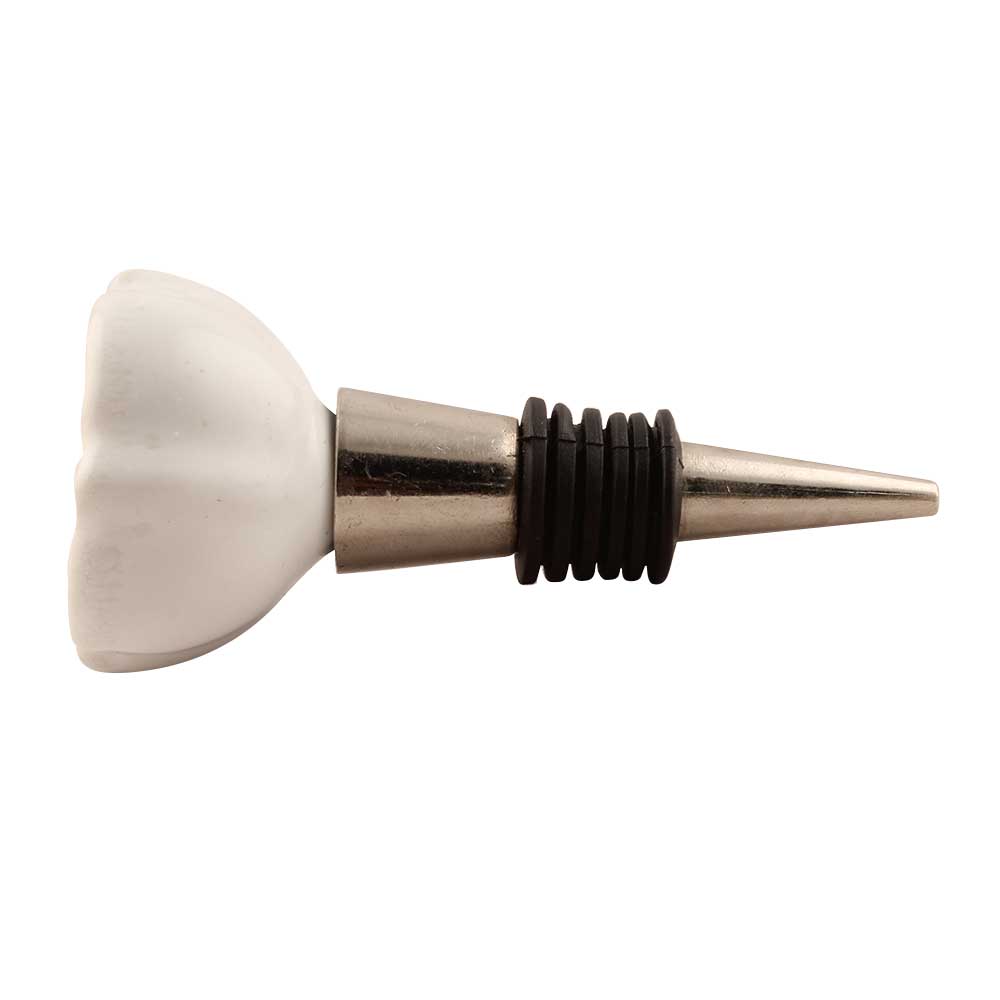 White Solid Ceramic Wine Stopper. Zinc Alloy Wine Bottle Stopper with Attractive Jute Bag Packaging.