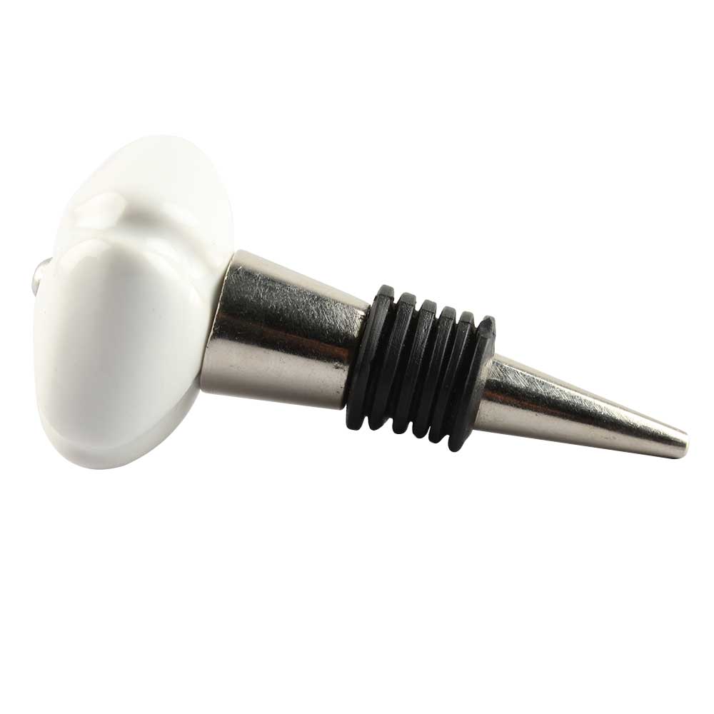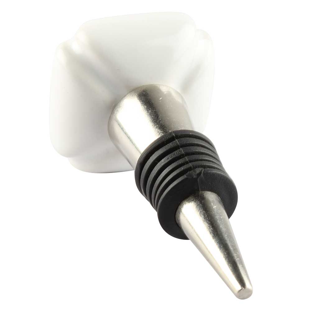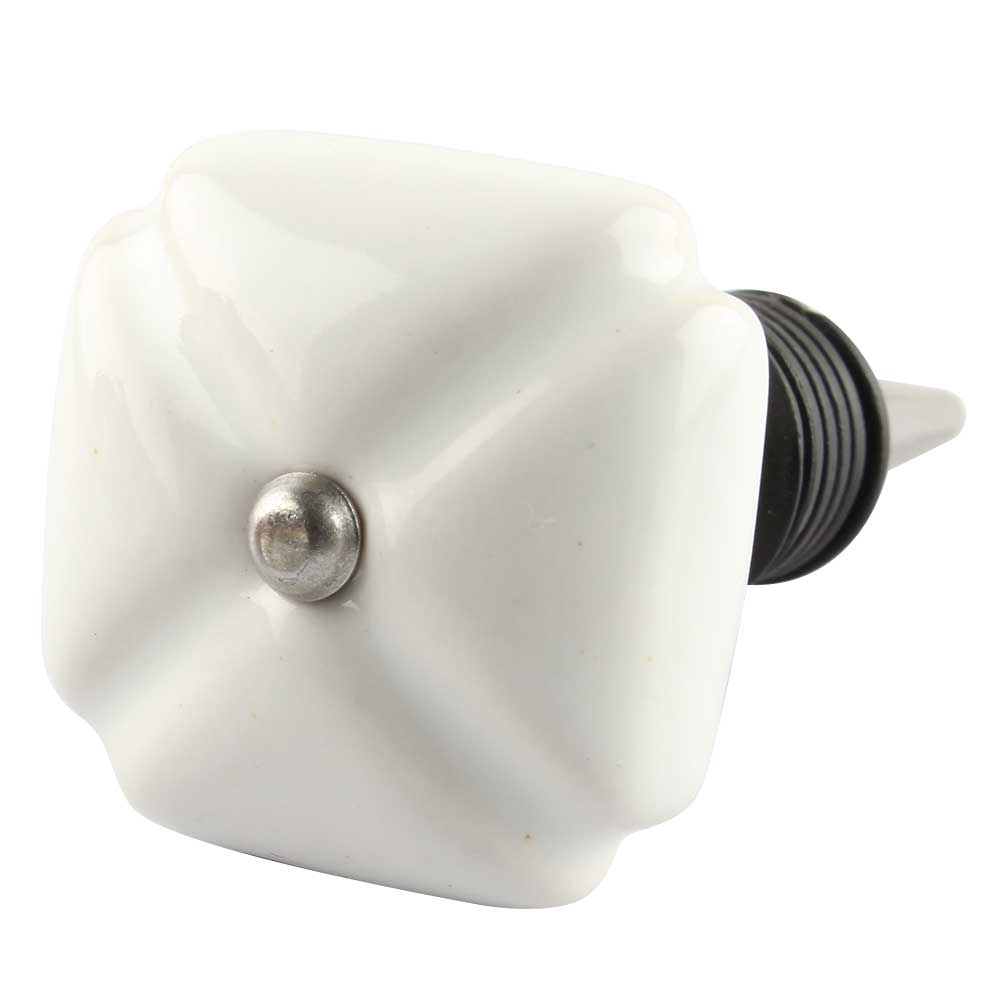 White Square Ceramic Wine Stopper Onine. Zinc Alloy Wine Bottle Stopper with Attractive Jute Bag Packaging.