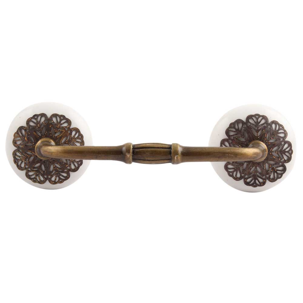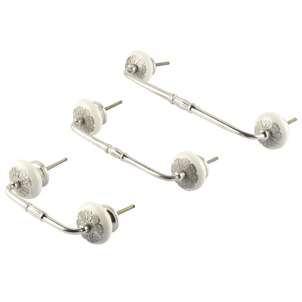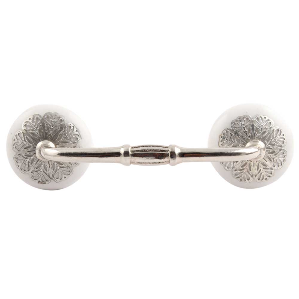 White Strewn Flat Ceramic Bridge Handle. Ideal for Drawer, Dresser, Cabinet, Wardrobe, Cupboard and Almirah.