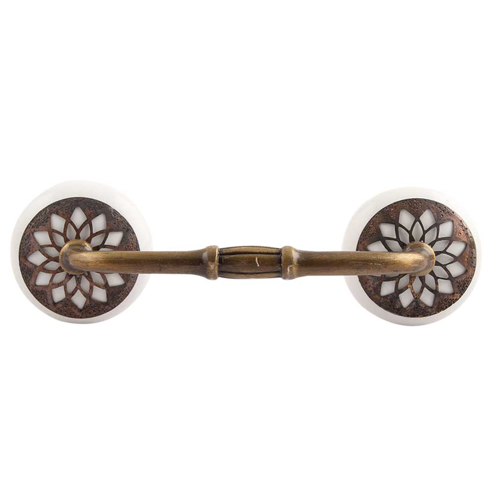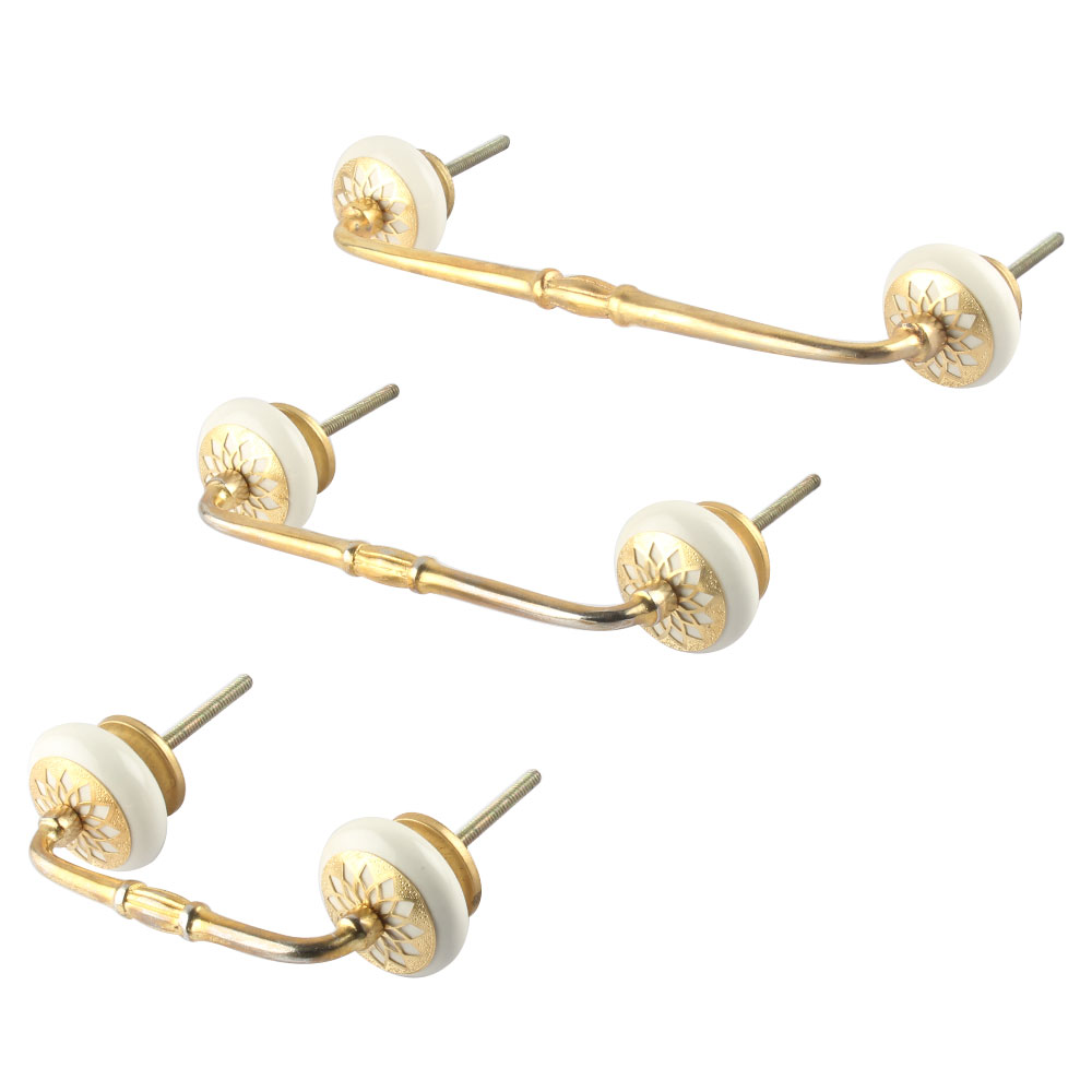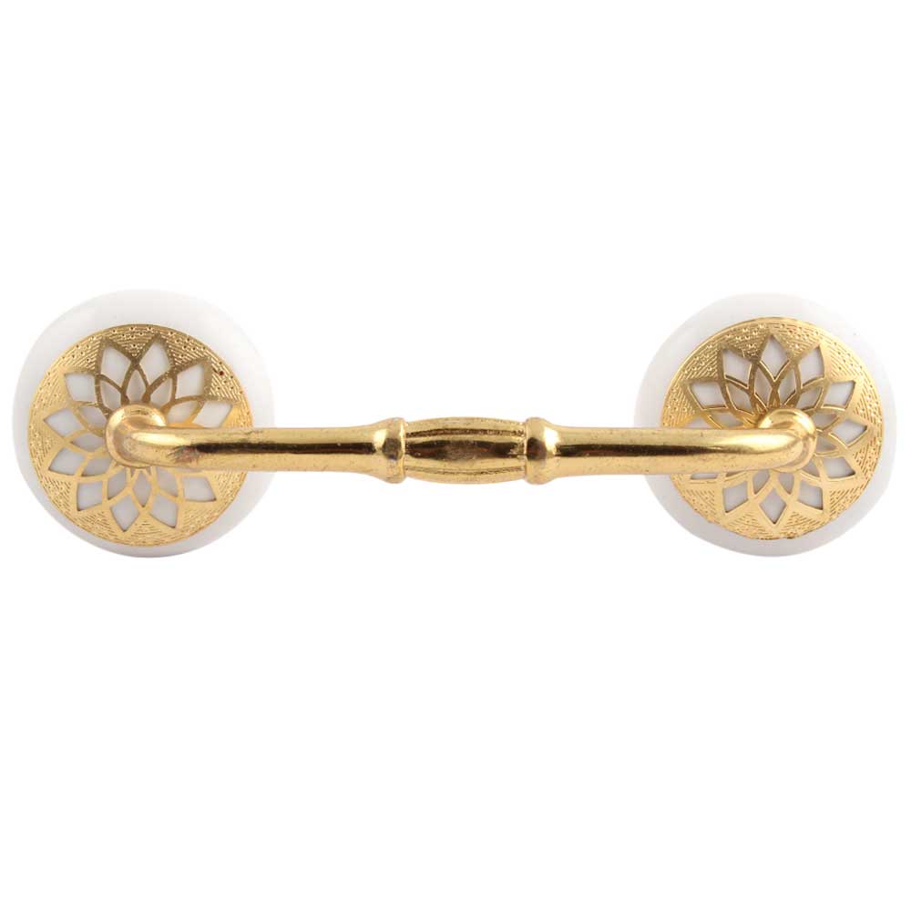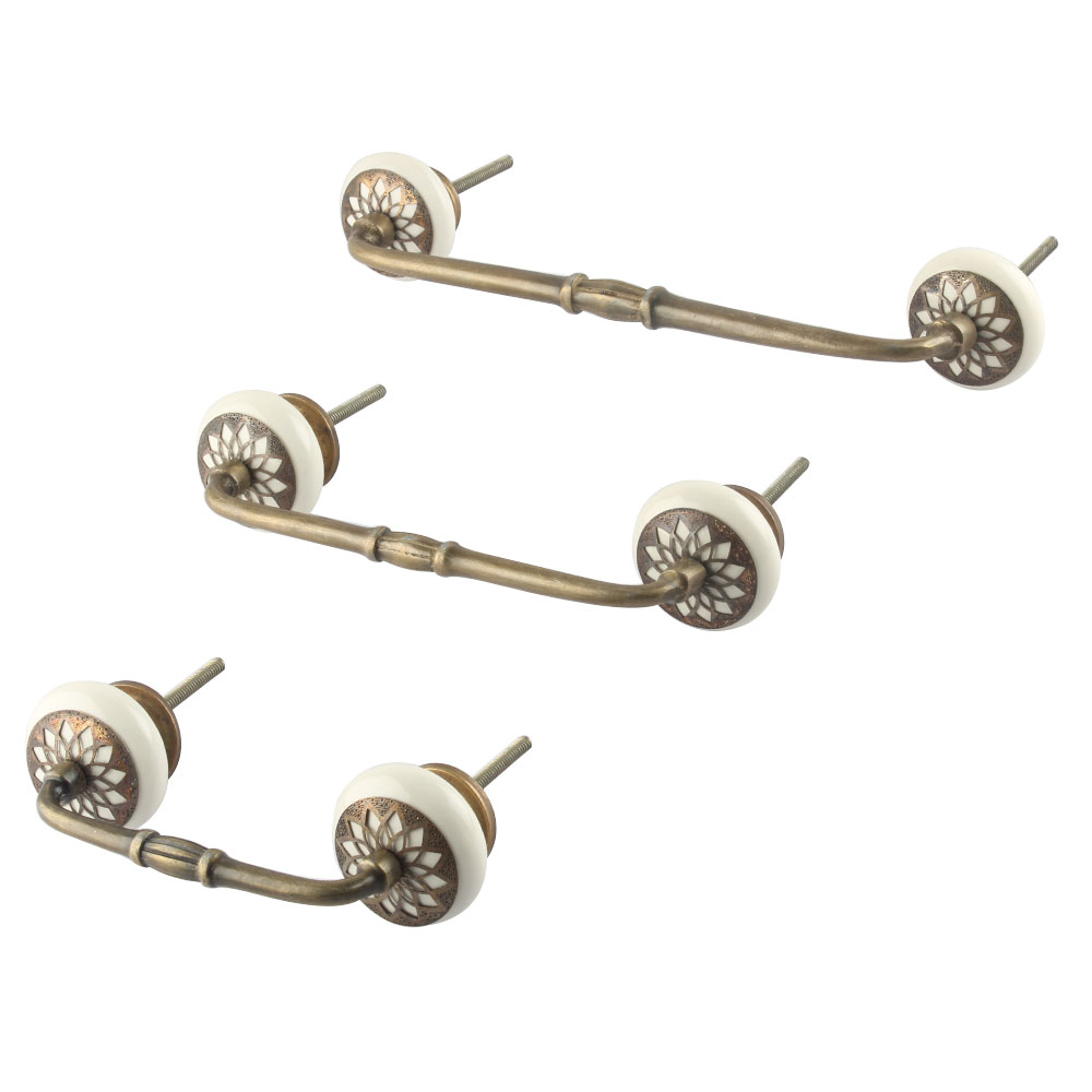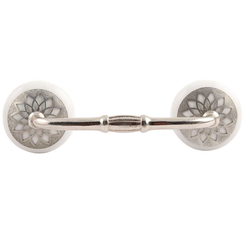 White Strewn Flat Ceramic Bridge Handle. Ideal for Drawer, Dresser, Cabinet, Wardrobe, Cupboard and Almirah.