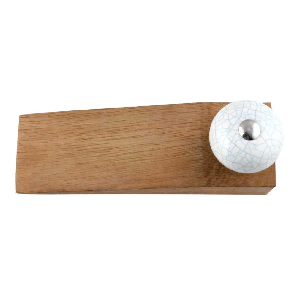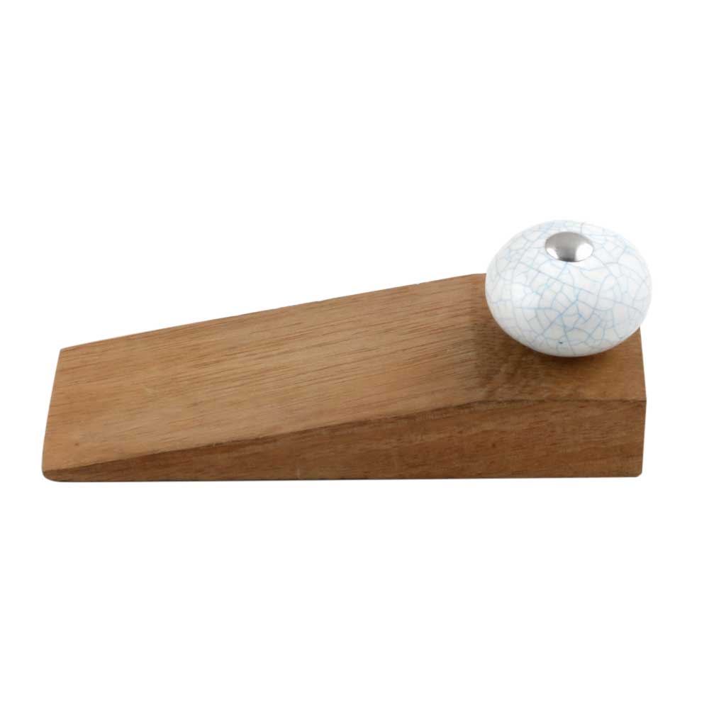 White Turquoise Ceramic Crackle Wwoden Door Stopper