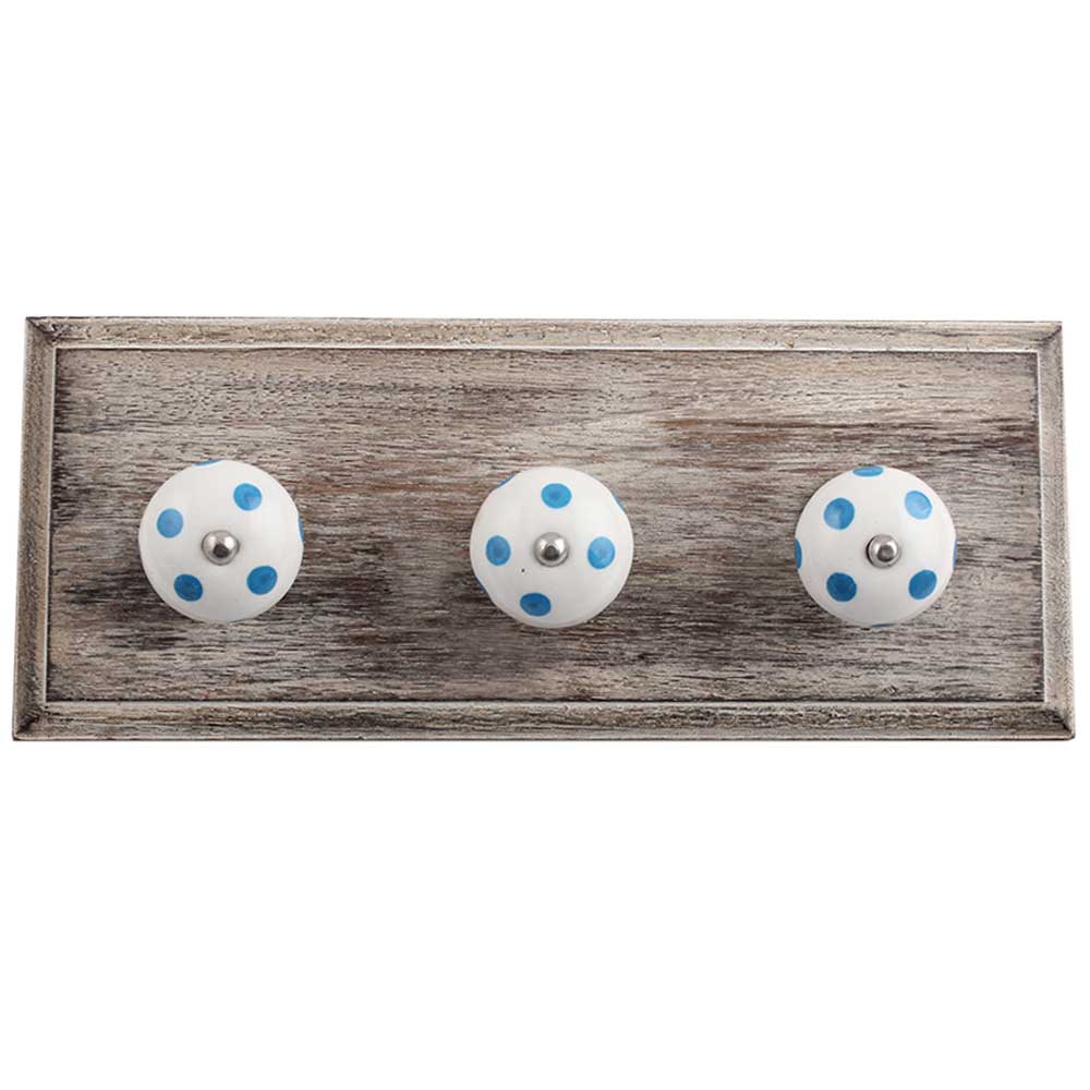 White Turquoise Dot Wooden Hooks. A Perfect Complement to the Soft Tone of the Wood are these White Traditional Hat &Amp; Coat Hook Made of Genuine Porcelain and Brass. It can be use to Hang Jewellery, Leashes, Towels, Scarves, Light Weight Sweaters, Caps Etc.