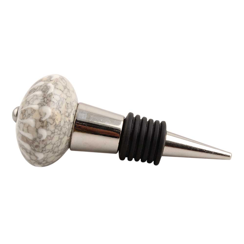 White Wheel Crackle Ceramic Wine Stopper.Zinc Alloy Wine Bottle Stopper with Attractive Jute Bag Packaging.