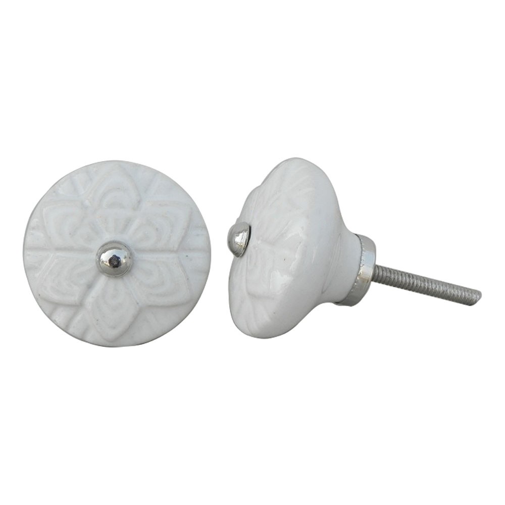 Constructed from high-quality ceramic, the White Wheel Flower Knob is both durable and sturdy, ensuring long-lasting use. It comes with all the necessary hardware for easy installation, making it quick and simple to upgrade your furniture.