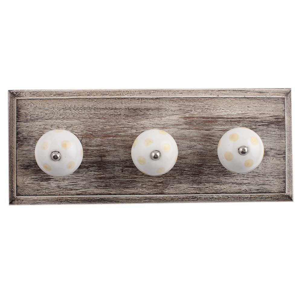 White Yellow Dot Wooden Hooks. A Perfect Complement to the Soft Tone of the Wood are these White Traditional Hat &Amp; Coat Hook Made of Genuine Porcelain and Brass. It can be use to Hang Jewellery, Leashes, Towels, Scarves, Light Weight Sweaters, Caps Etc.