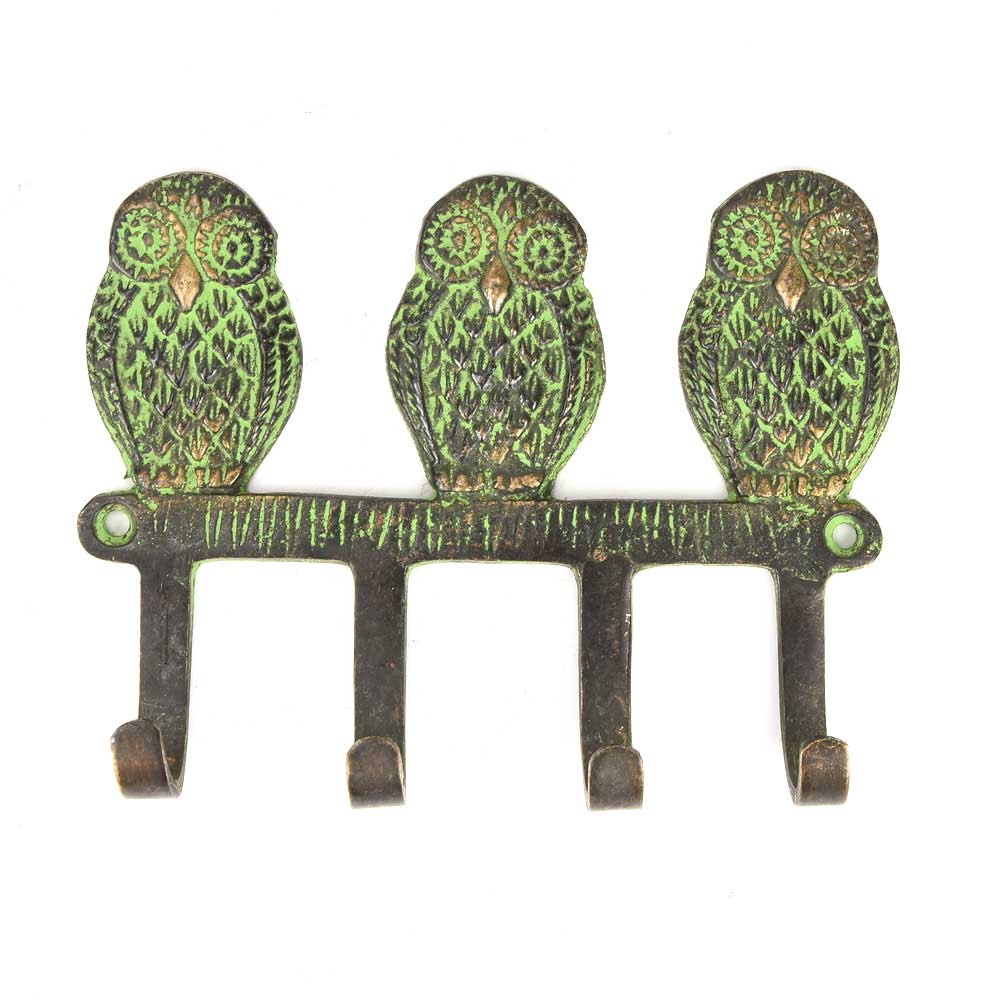 Wise Owl Wall Hooks Set of 3 in Patina Bronze.
