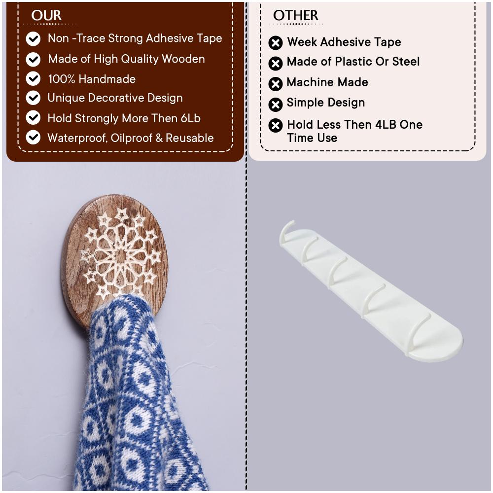 Bring a touch of rustic charm and practicality to your space with the Wooden Brown Floral Sticky Hook for Wall. Its beautiful floral detailing and simple installation process make it a must-have for any home.