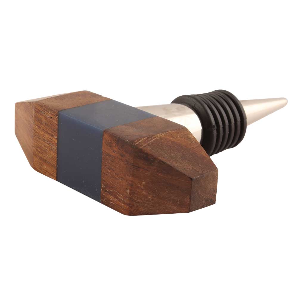 Wooden Gilli Resin Wine Stopper. Zinc Alloy Wine Bottle Stopper with Attractive Jute Bag Packaging.