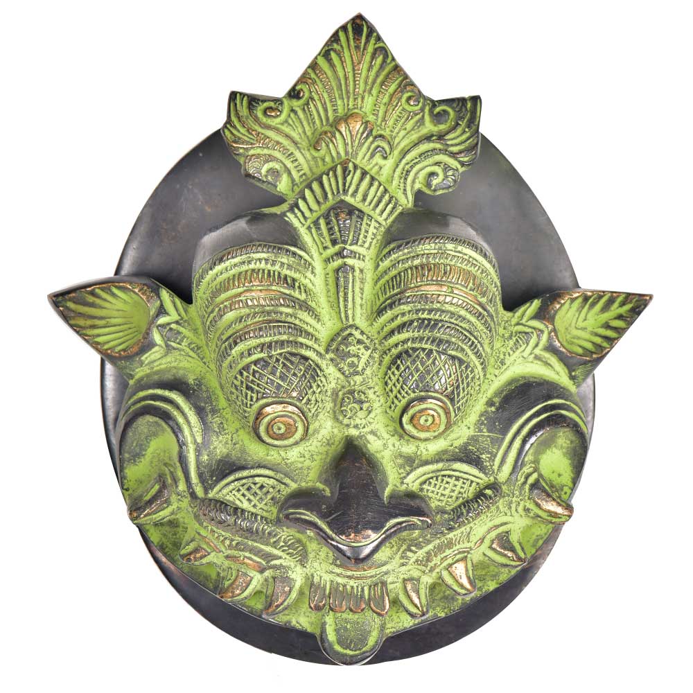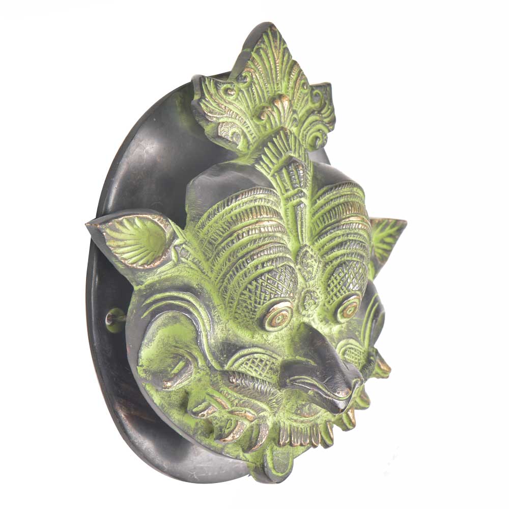 Solid brass Yali face door knocker that protects you and your family from the evil eye and also makes a lovely decoration for the main door . Characterful door knocker comes with a base plate created in solid high grade brass with green patina it really is the cutest door knocker . Also used for gifting.